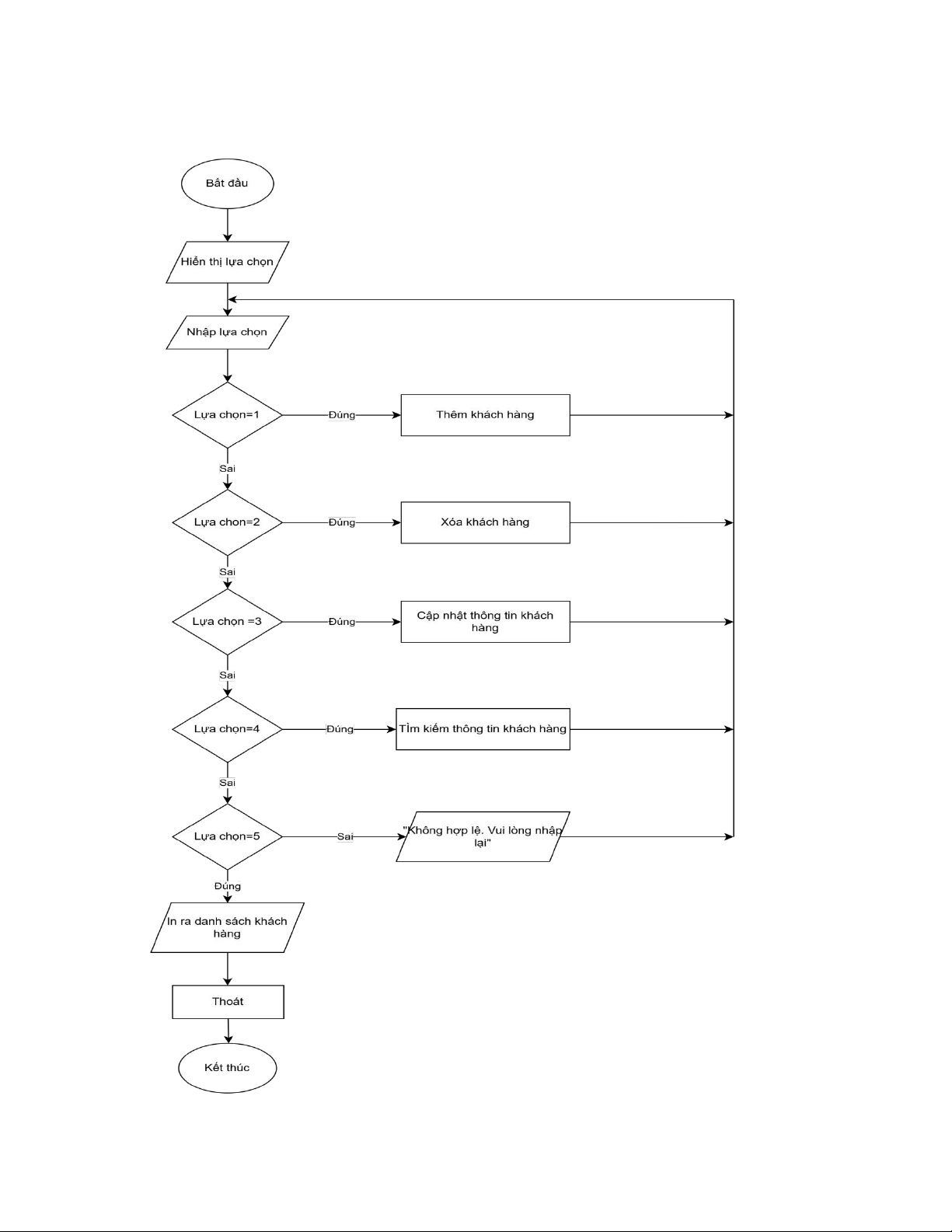 Sai: Thông báo lựa chọn không hợp lệ và nhập lại→ Quay lại bước 3