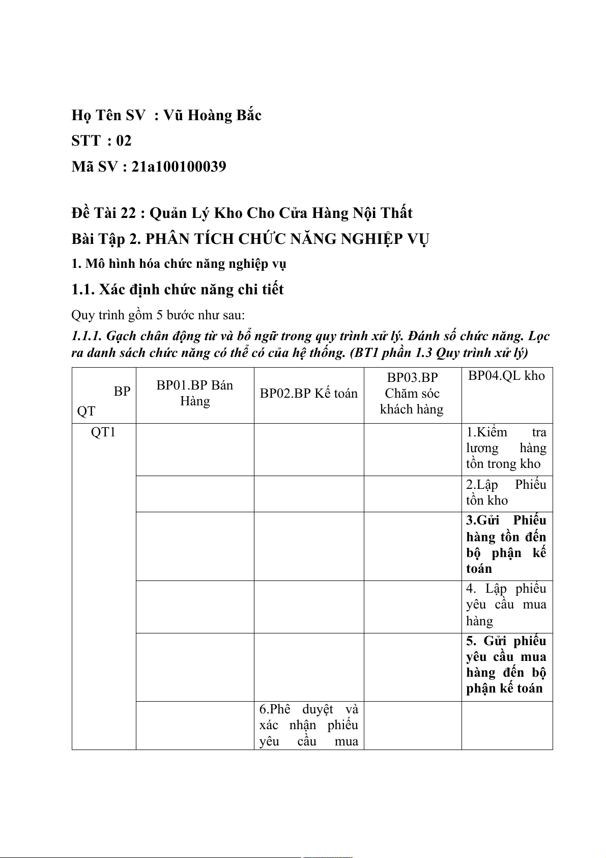 Bài Tập 2. PHÂN TÍCH CHỨC NĂNG NGHIỆP VỤ