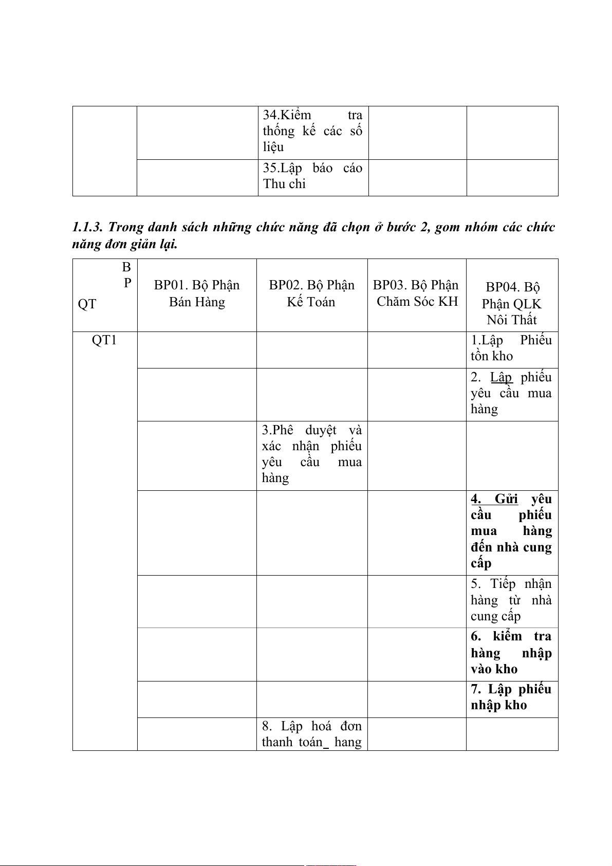 1.1.3. Trong danh sách những chức năng đã chọn ở bước 2, gom nhóm các chức