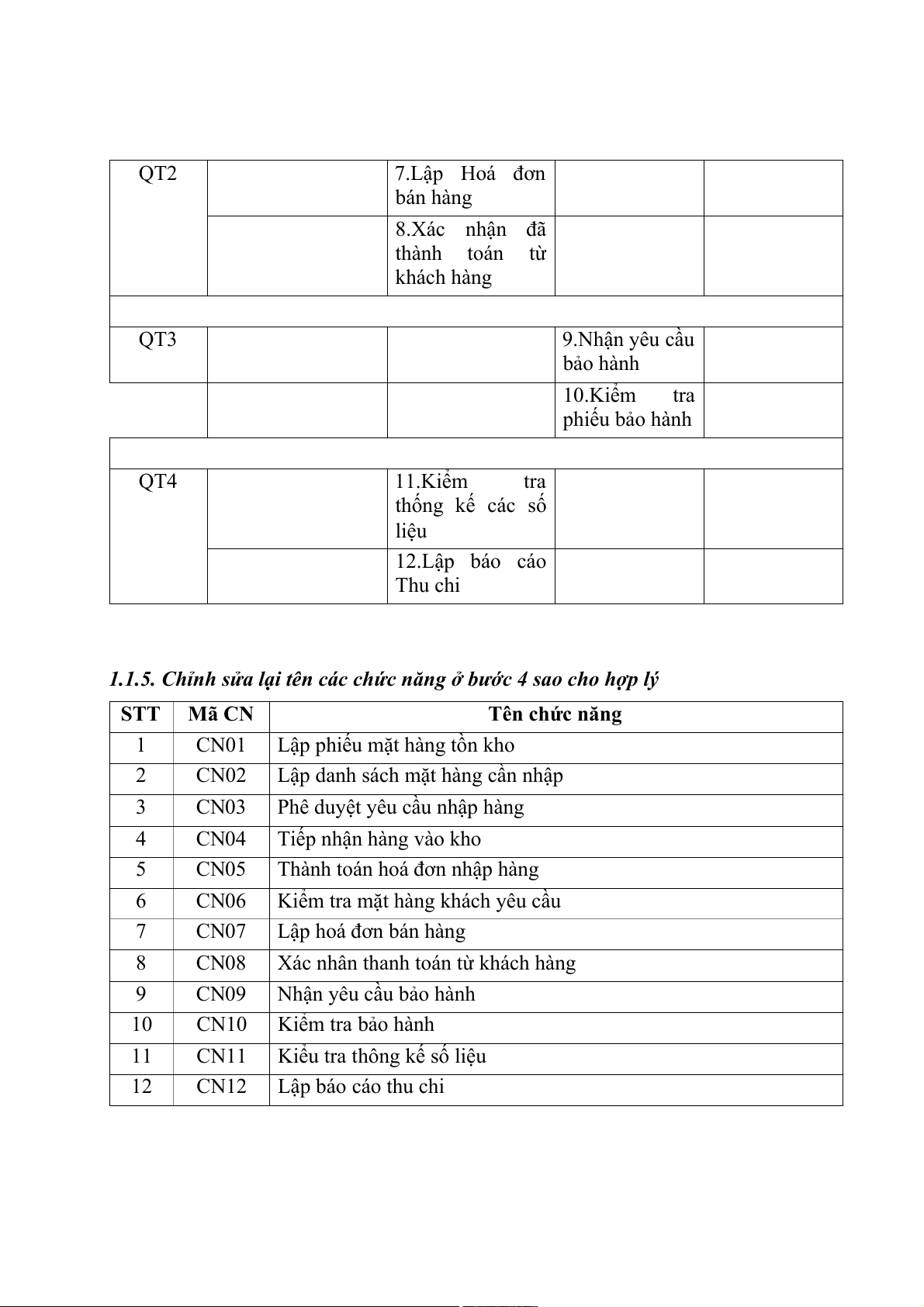 1.1.5. Chỉnh sửa lại tên các chức năng ở bước 4 sao cho hợp lý STT Mã CN Tên chức năng 1 CN01