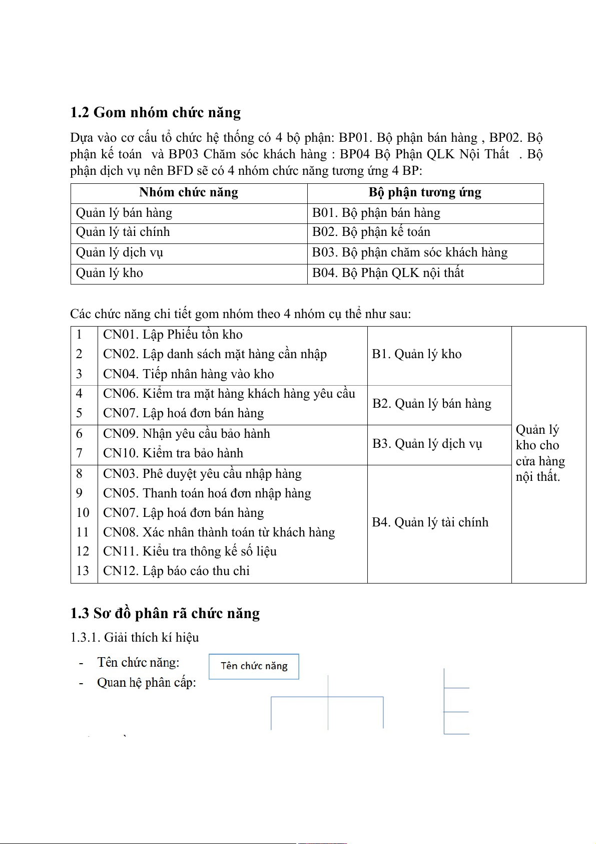 phận dịch vụ nên BFD sẽ có 4 nhóm chức năng tương ứng 4 BP: Nhóm chức năng