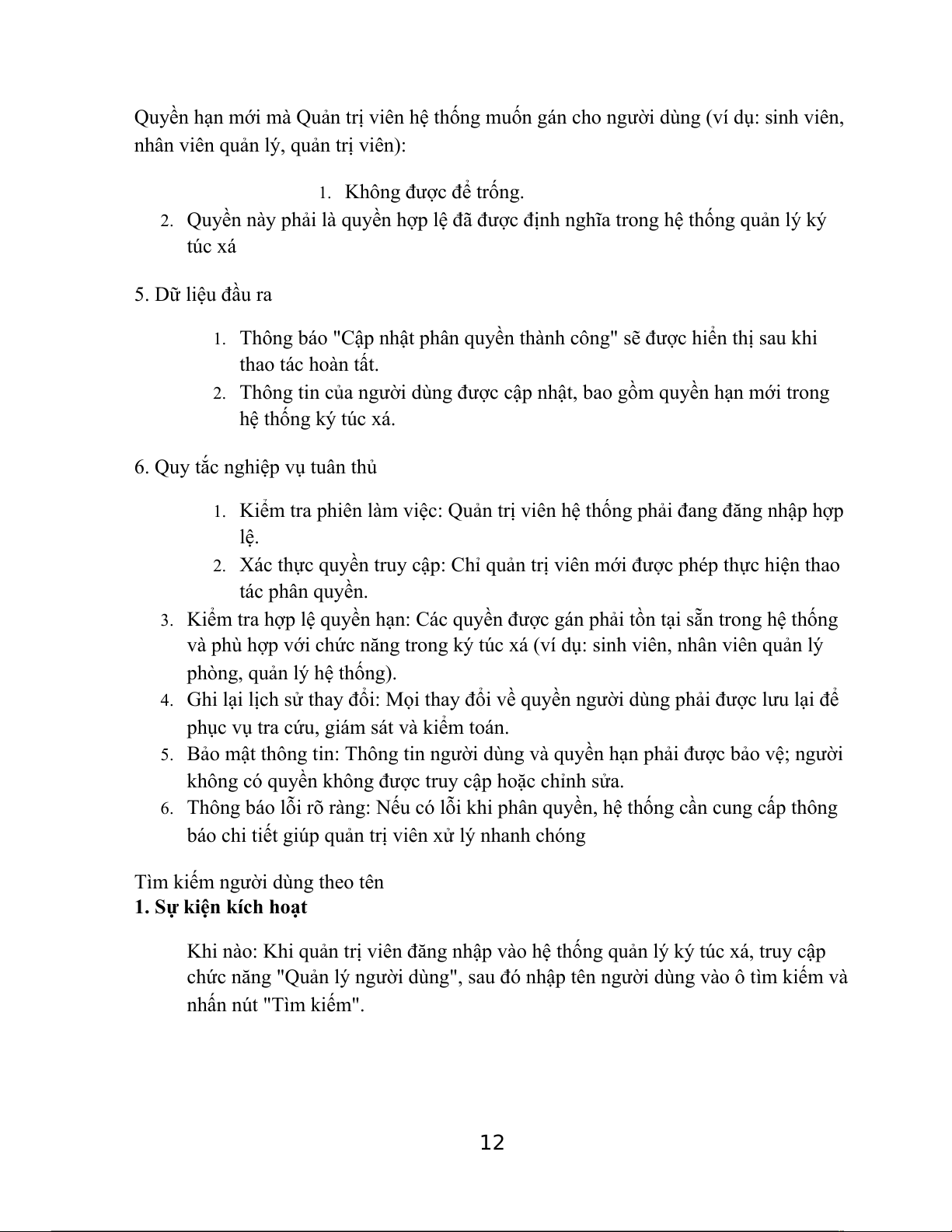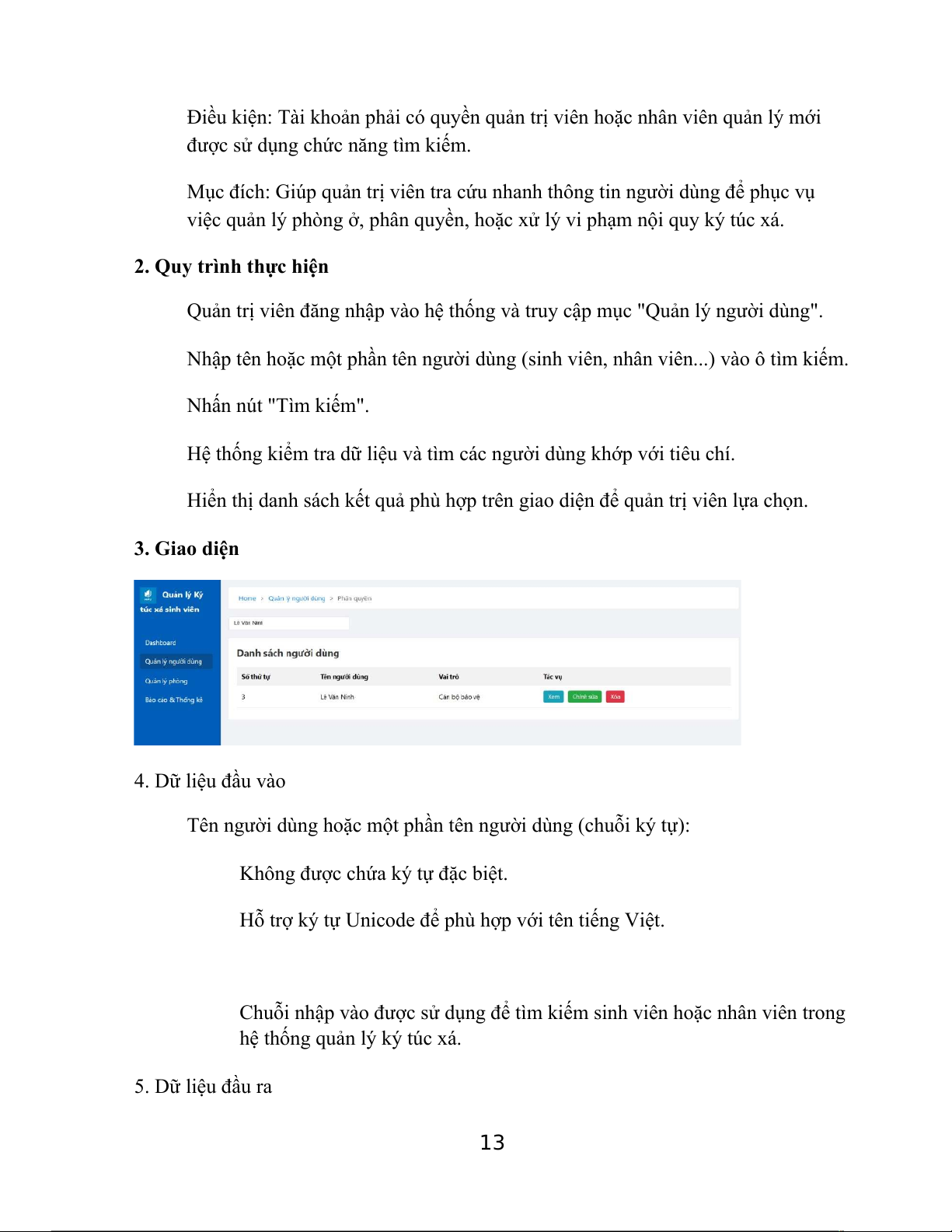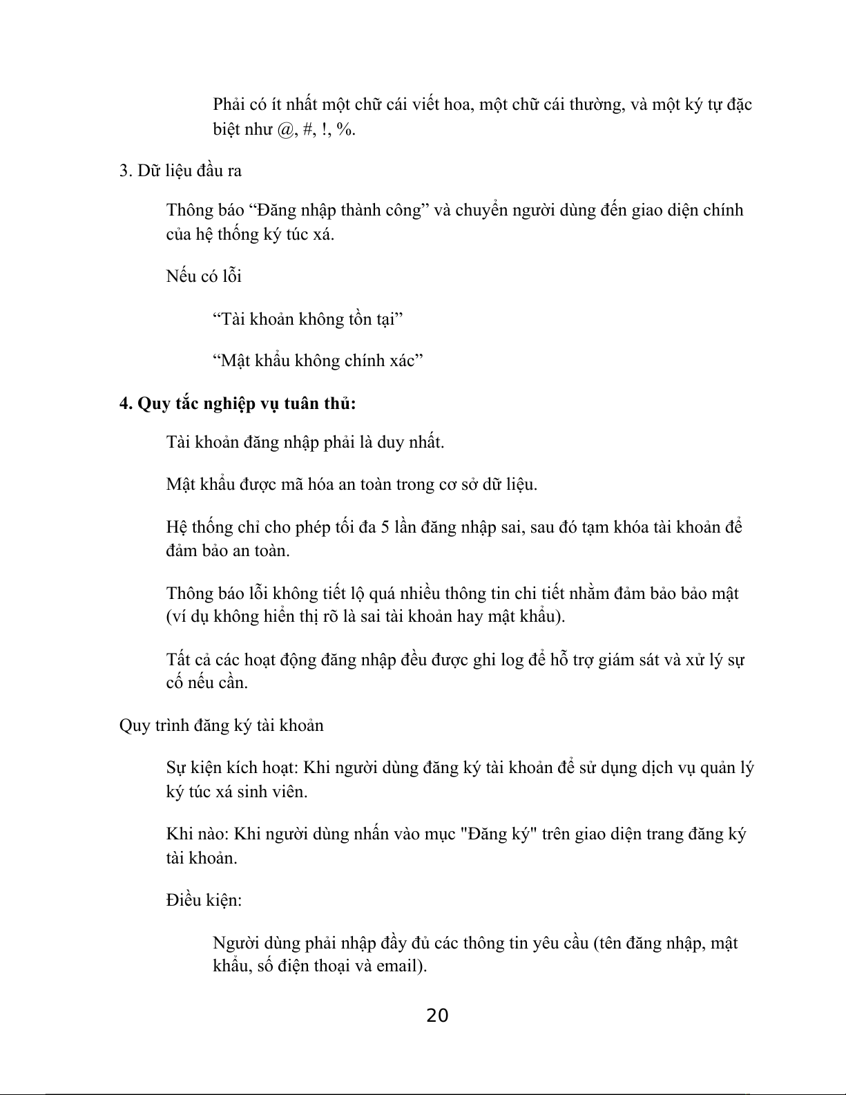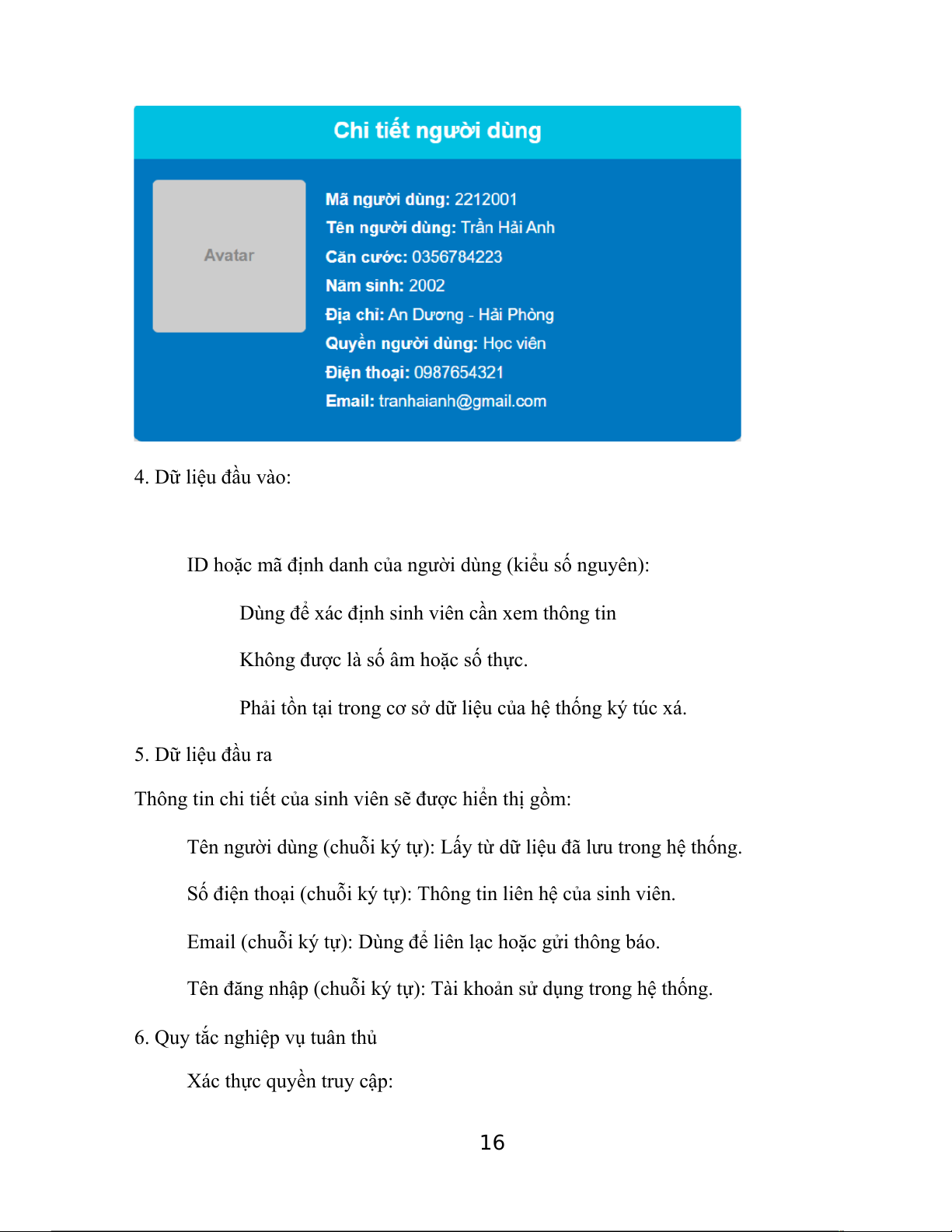 Phải tồn tại trong cơ sở dữ liệu của hệ thống ký túc xá. 5. Dữ liệu đầu ra