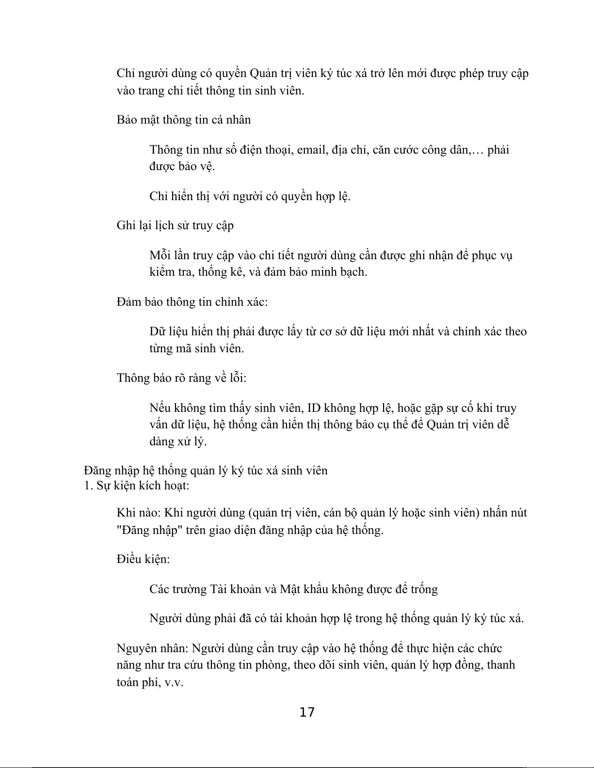 Đăng nhập hệ thống quản lý ký túc xá sinh viên 1. Sự kiện kích hoạt: