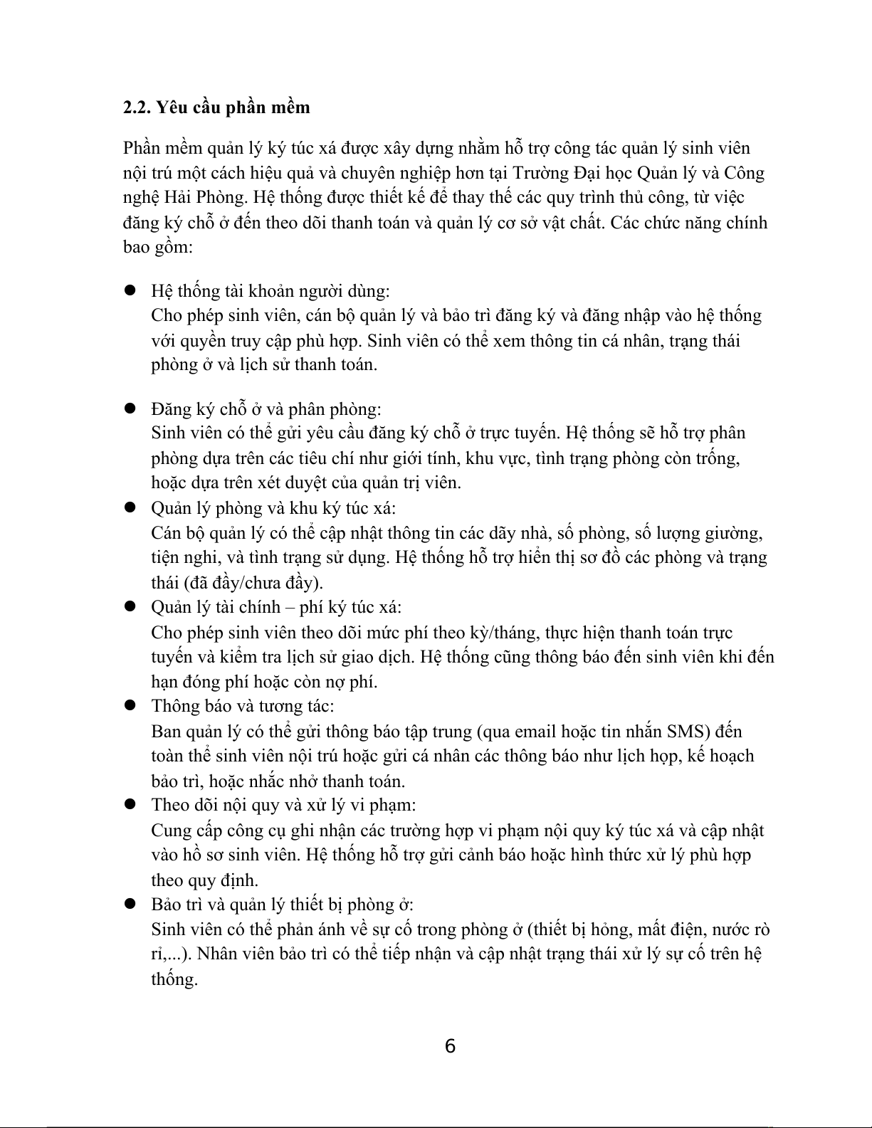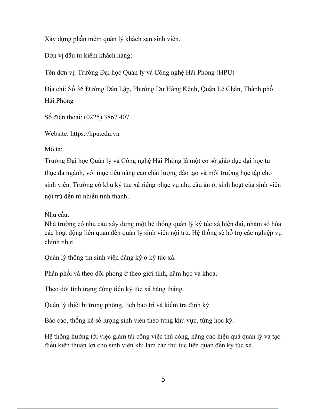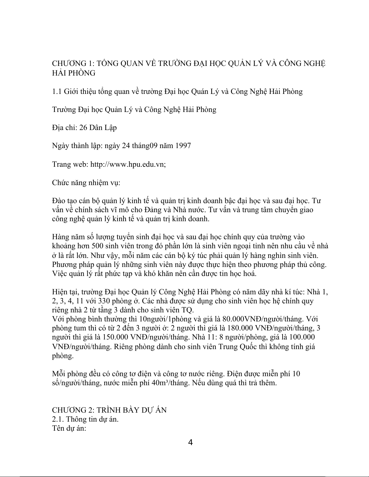 Hải Phòng”, với các chức năng lưu trữ, xử lý thông tin về sinh viên và tình hình trong kí túc. 3