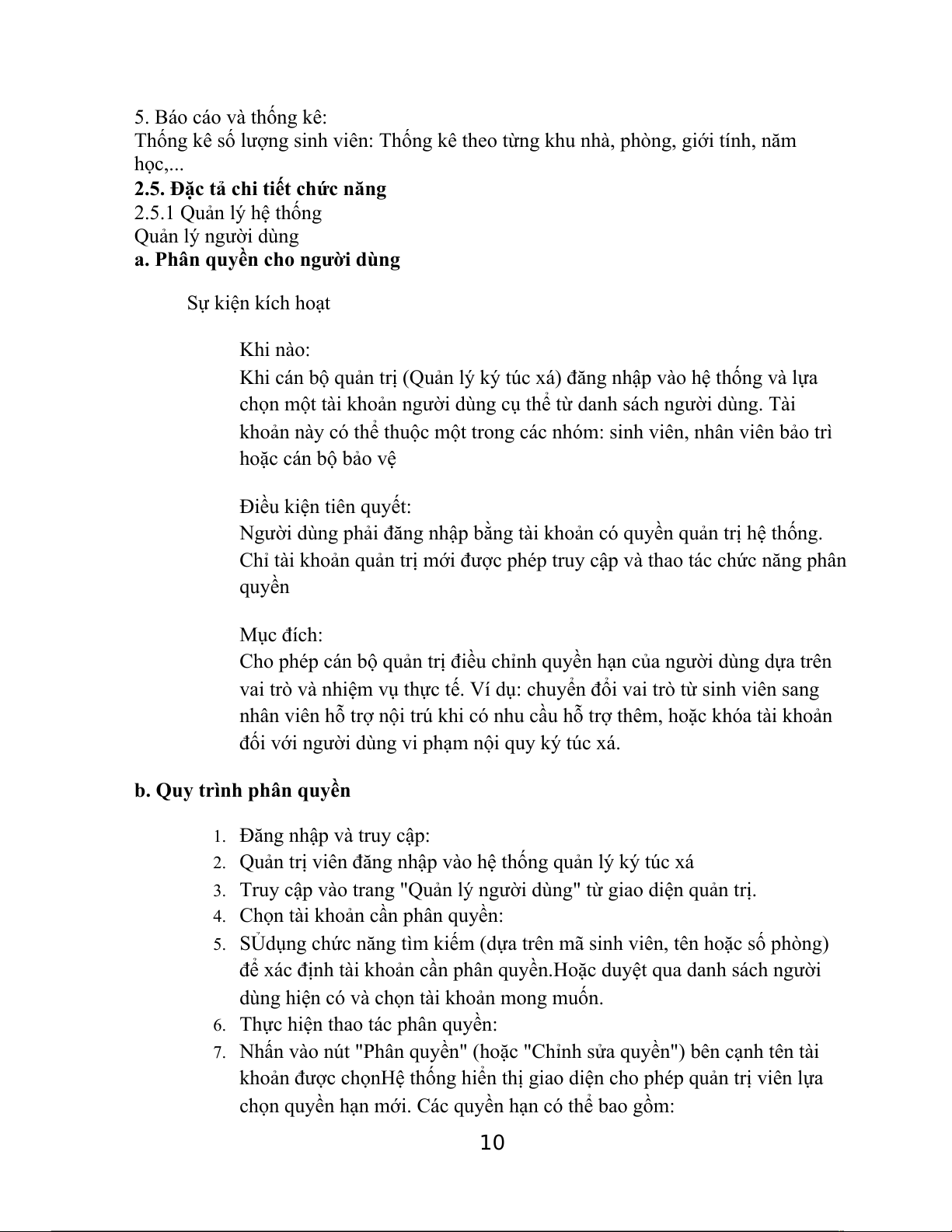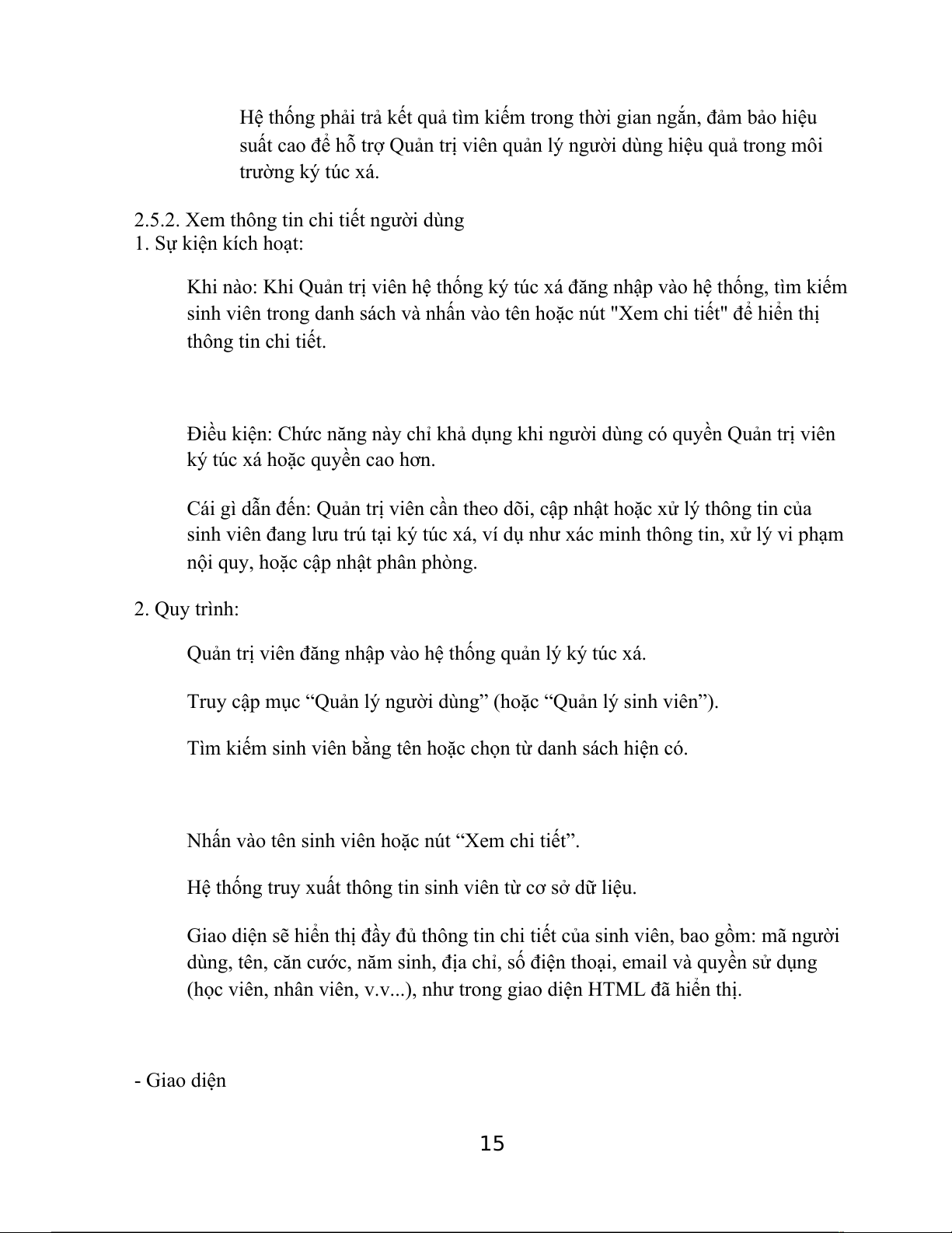 năng như tra cứu thông tin phòng, theo dõi sinh viên, quản lý hợp đồng, thanh toán phí, v.v. 17 2. Quy trình thực hiện: