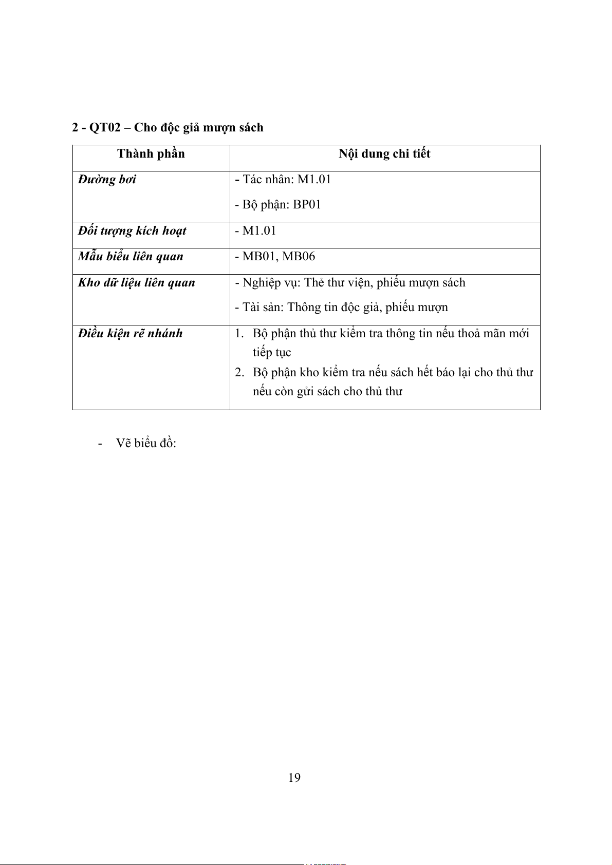 2 - QT02 – Cho độc giả mượn sách Thành phần Nội dung chi tiết Đường bơi - Tác nhân: M1.01 - Bộ phận: BP01
