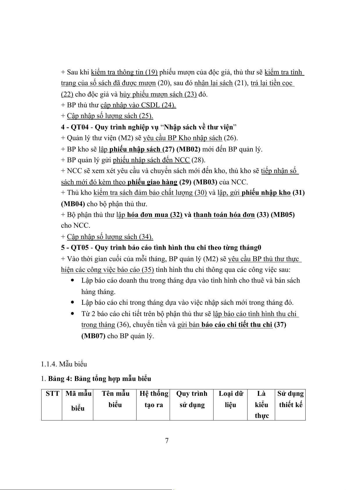 (MB07) cho BP quản lý. 1.1.4. Mẫu biểu