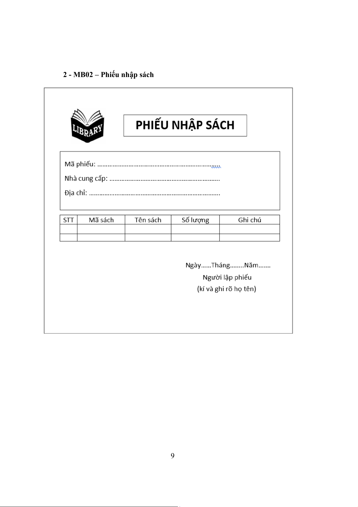 2 - MB02 – Phiếu nhập sách 9