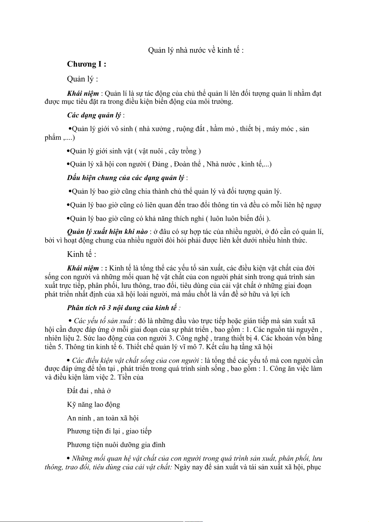 Quản lý nhà nước về kinh tế : Chương I : Quản lý :