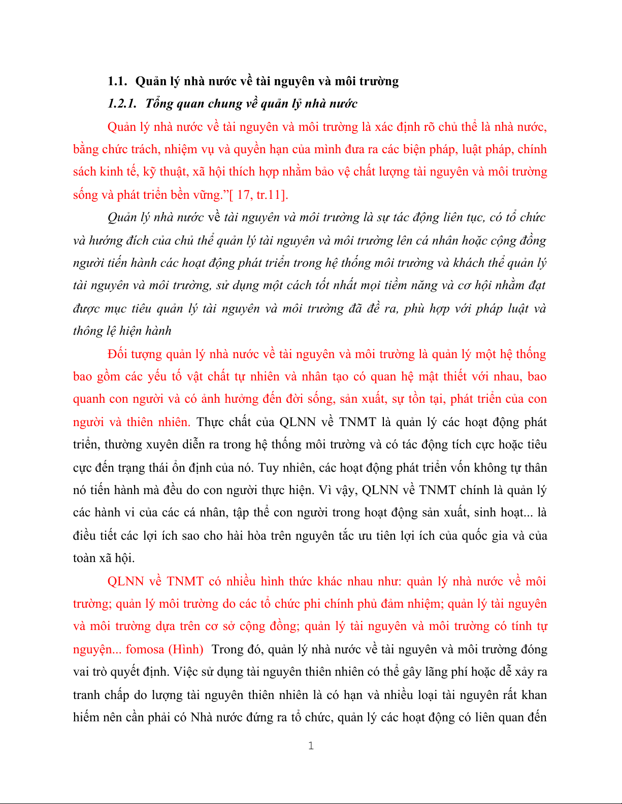 1.1. Quản lý nhà nước về tài nguyên và môi trường