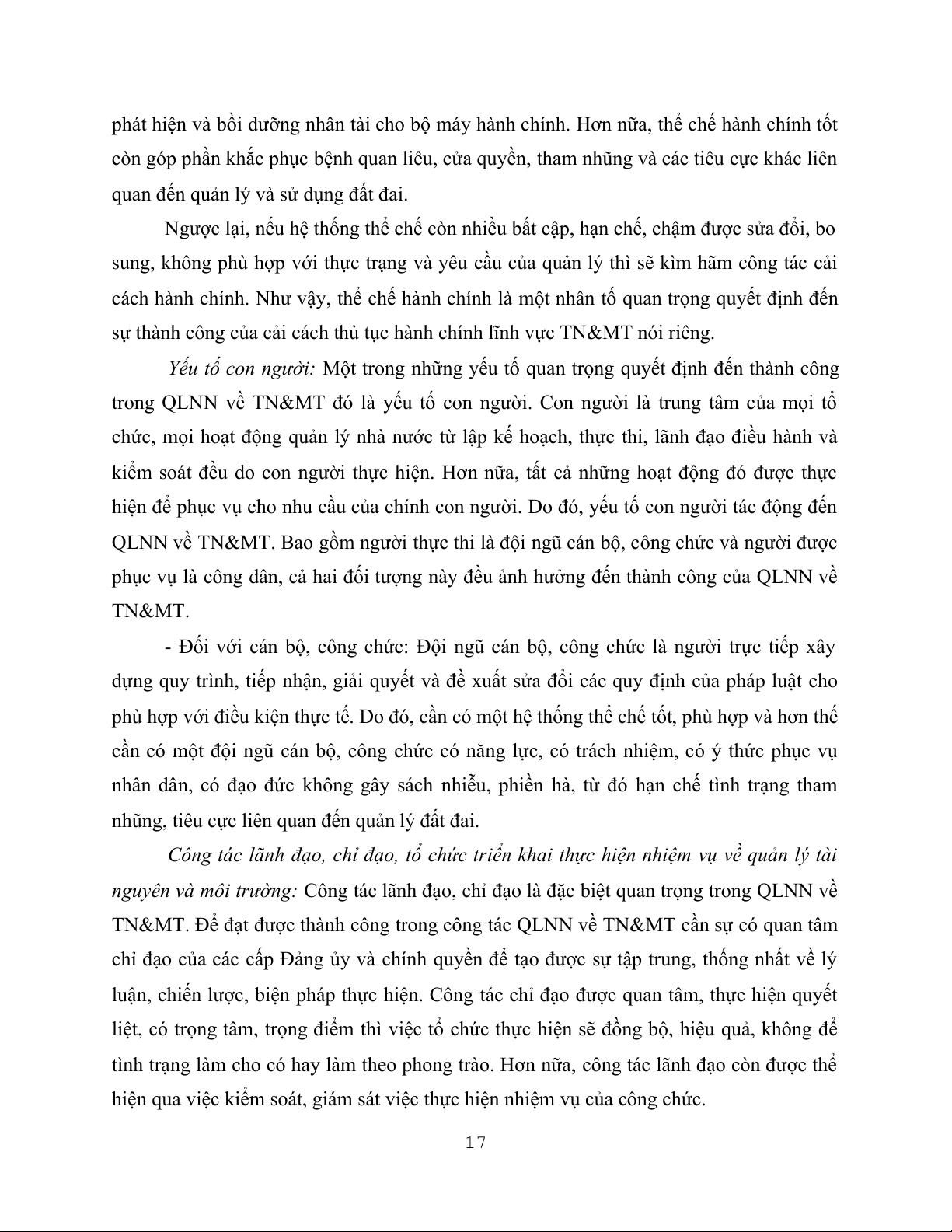 TN&MT. Để đạt được thành công trong công tác QLNN về TN&MT cần sự có quan tâm