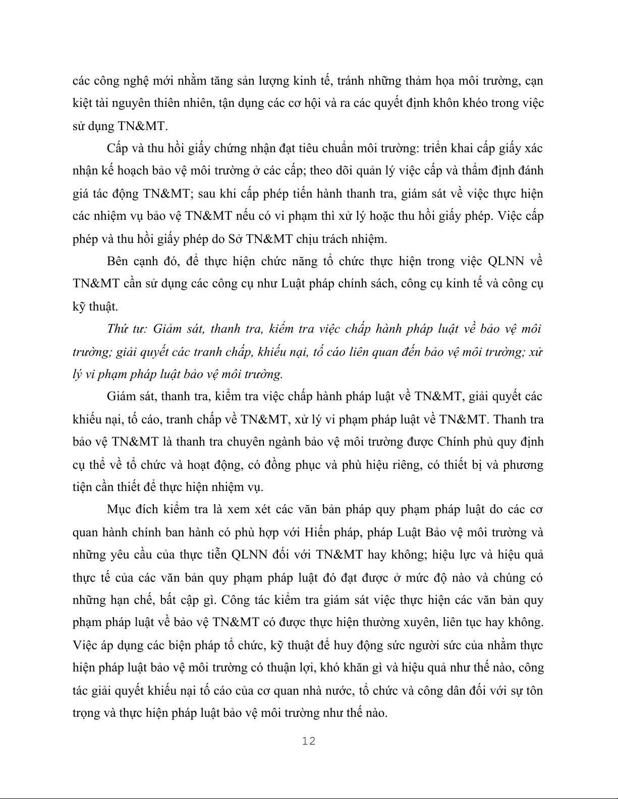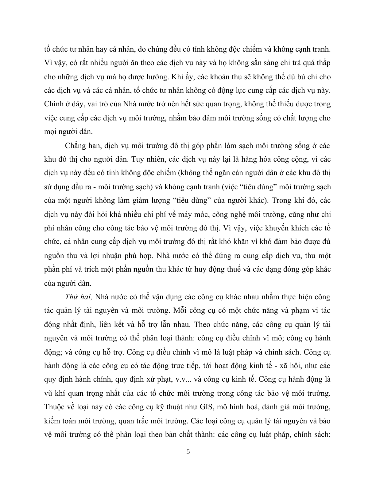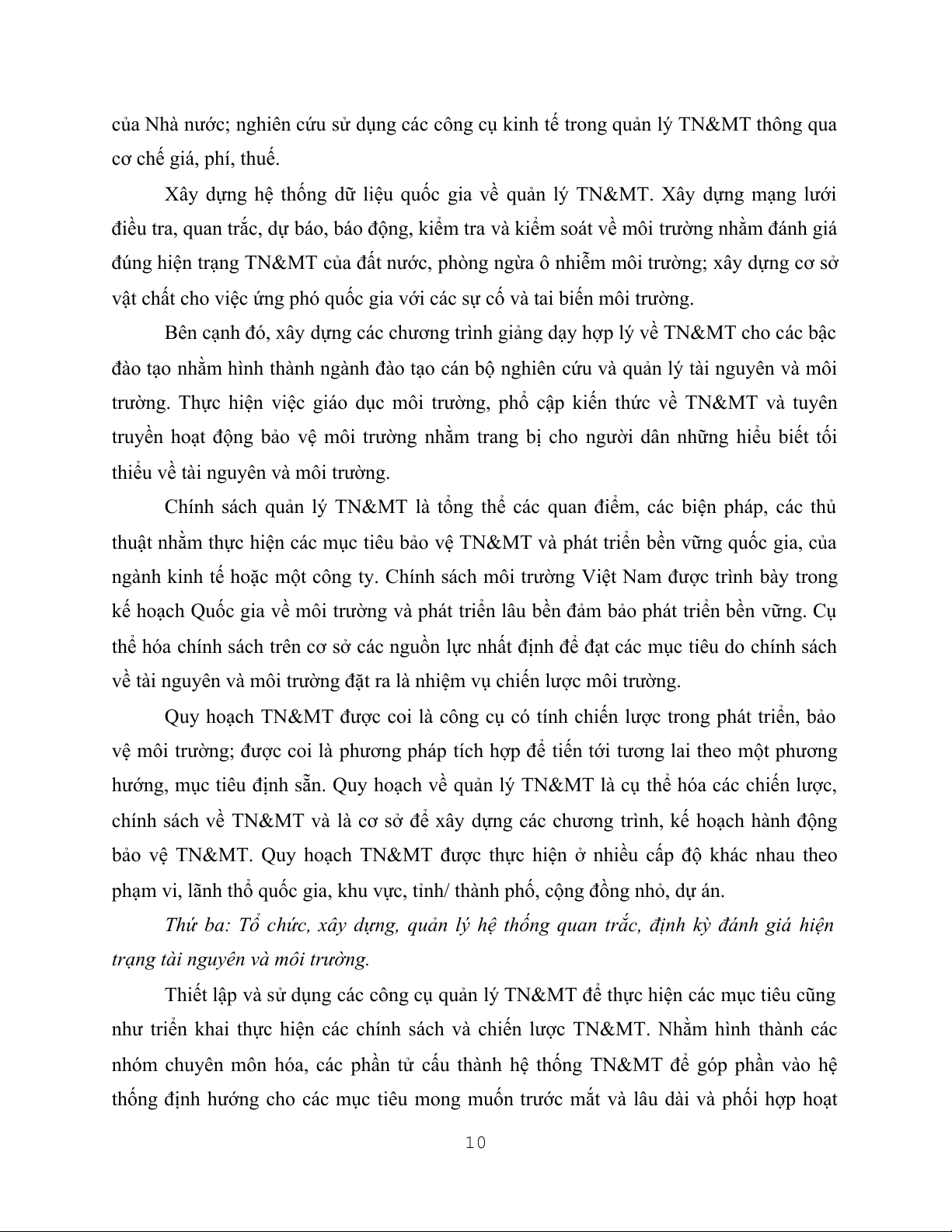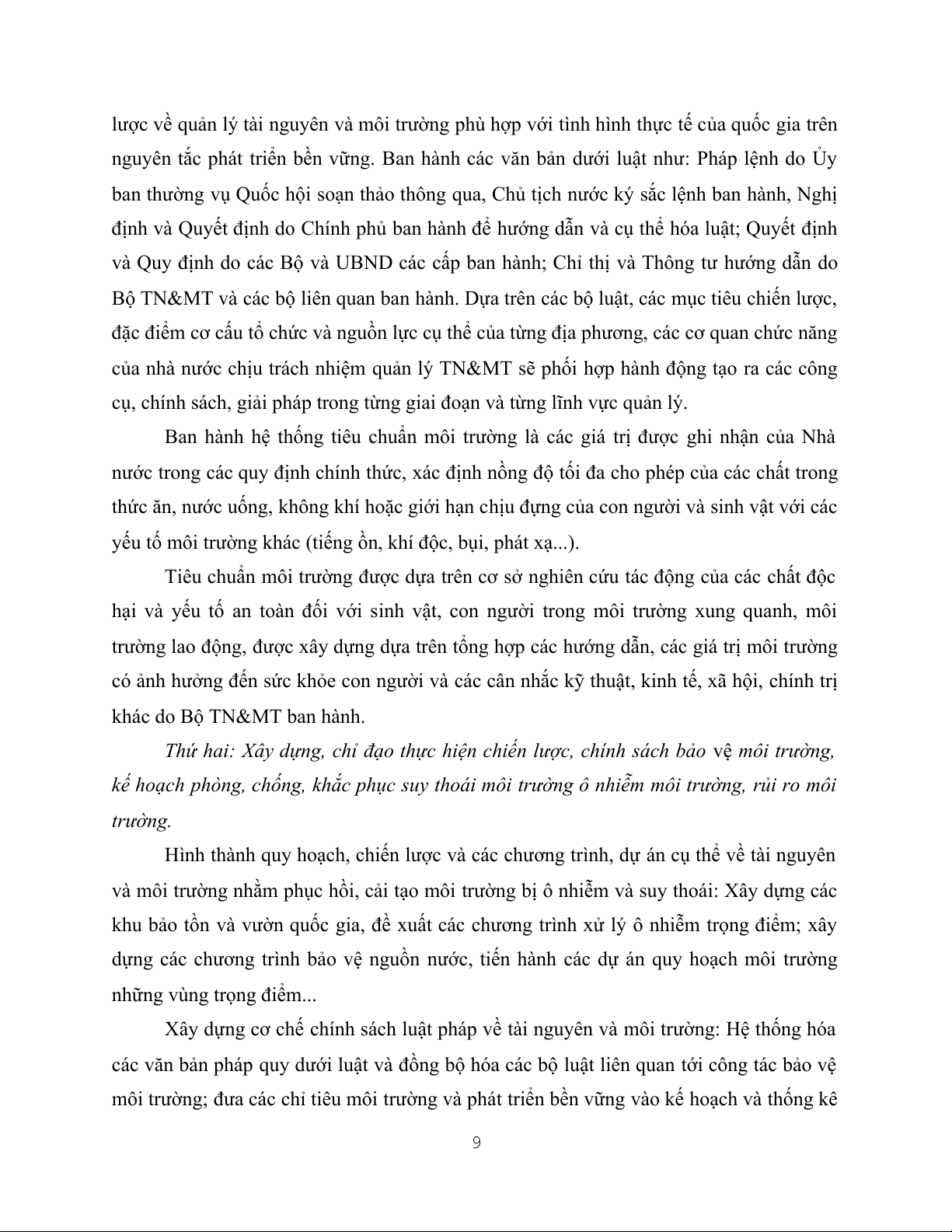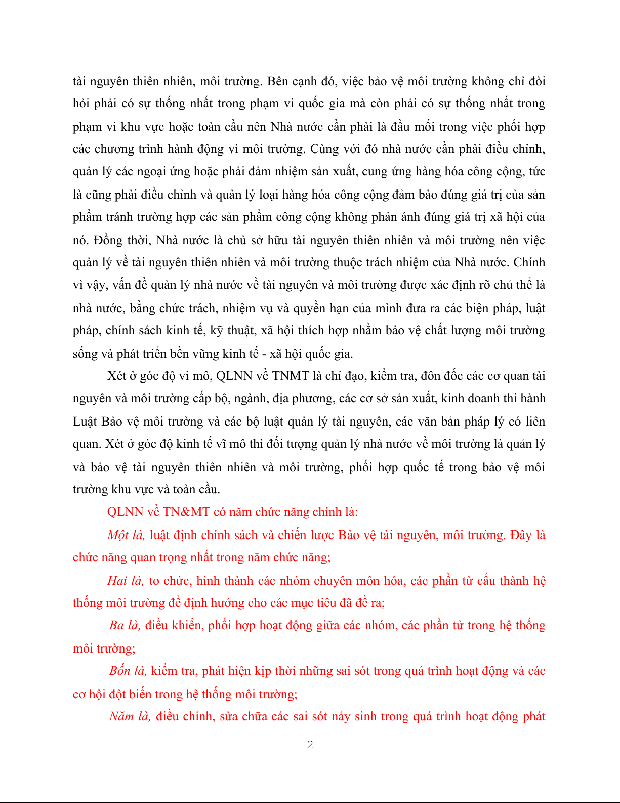 tài nguyên thiên nhiên, môi trường. Bên cạnh đó, việc bảo vệ môi trường không chỉ đòi
