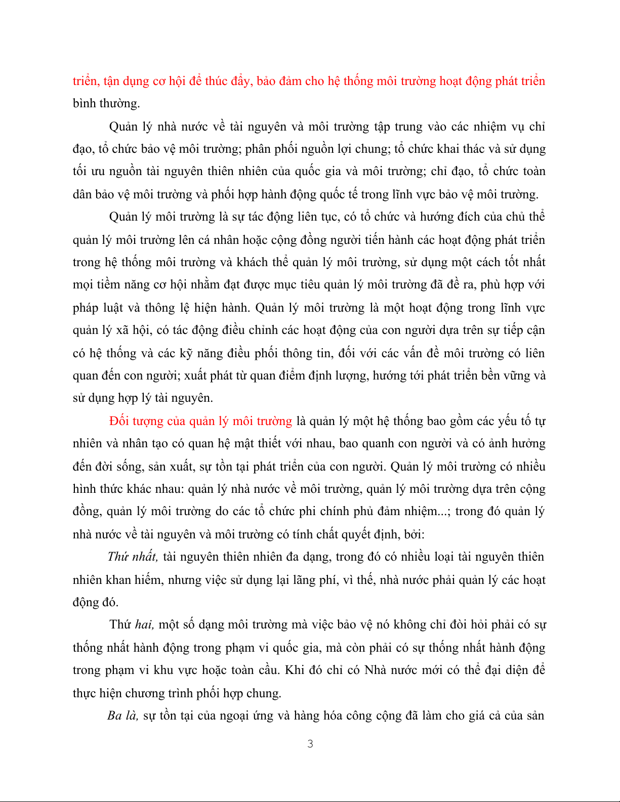 đến đời sống, sản xuất, sự tồn tại phát triển của con người. Quản lý môi trường có nhiều