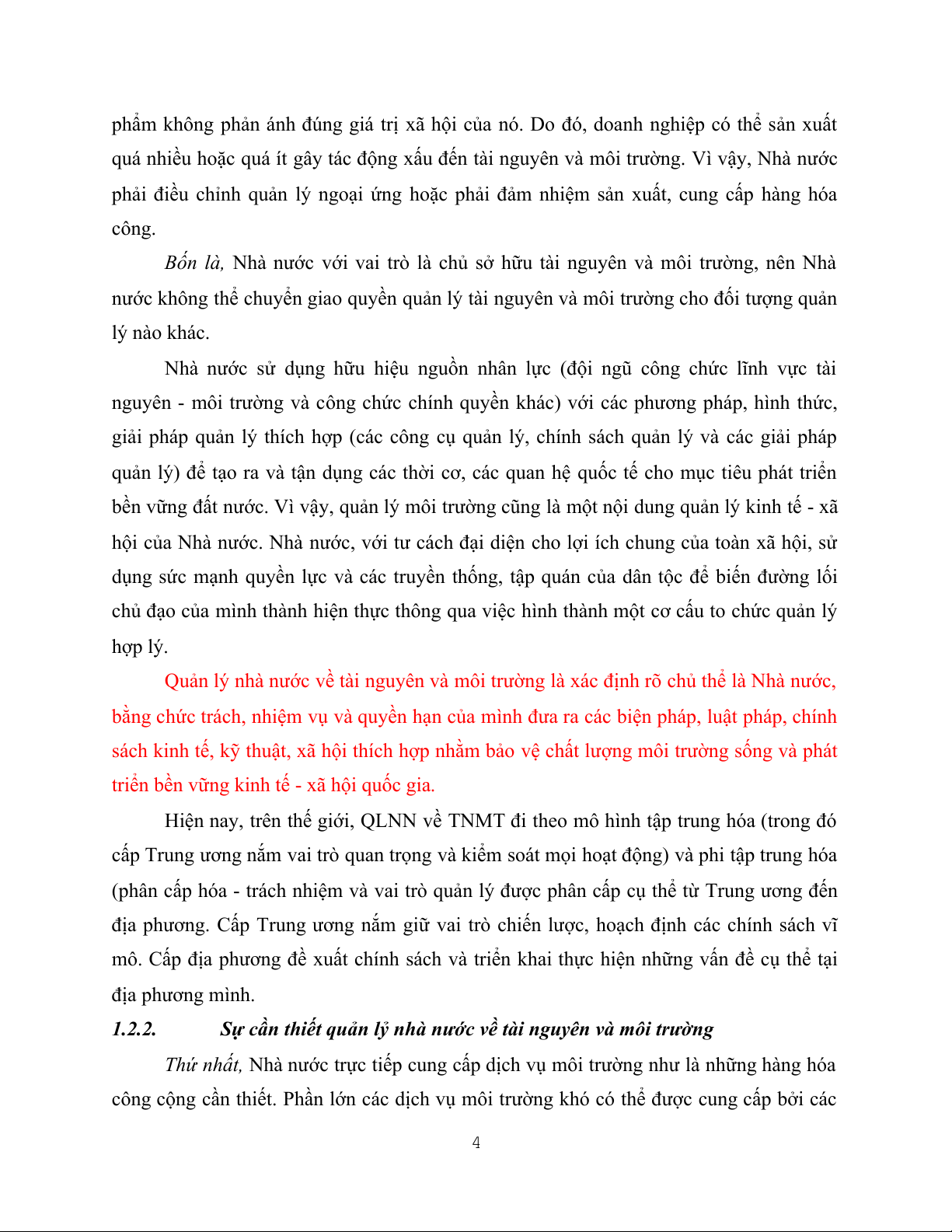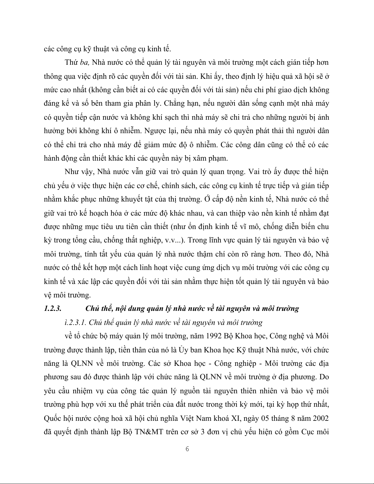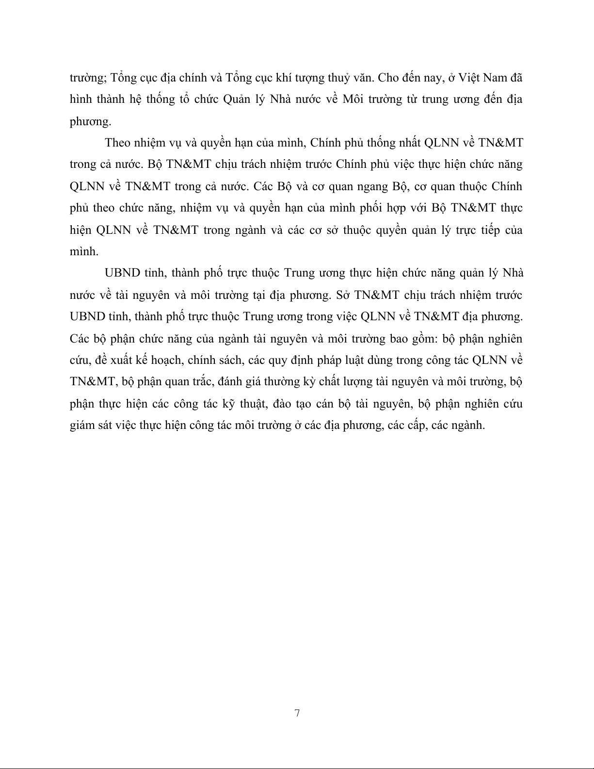 vì vậy, vấn đề quản lý nhà nước về tài nguyên và môi trường được xác định rõ chủ thể là