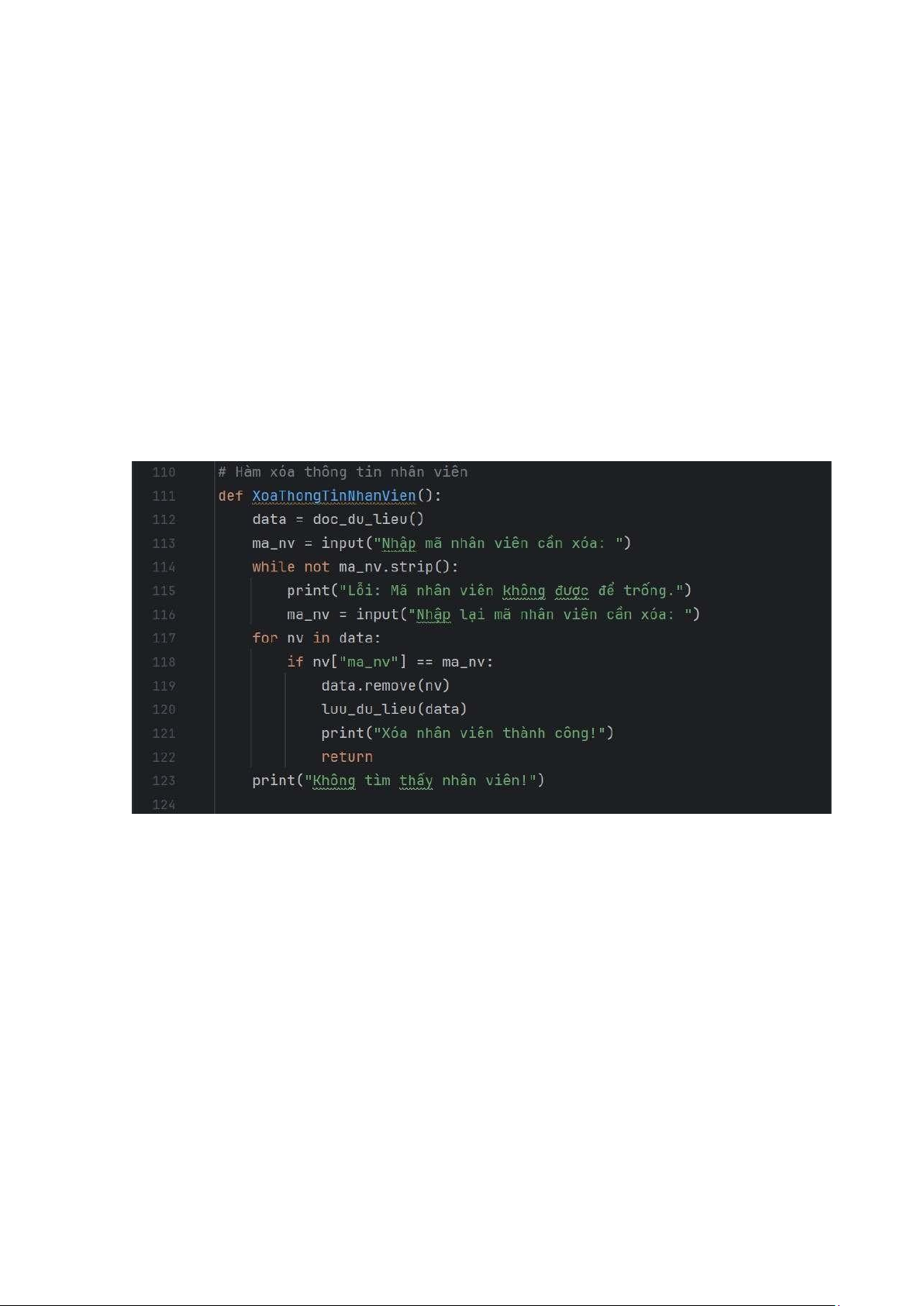 - Hàm xoa_thong_tin( ) có chức năng xóa thông tin nhân viên khỏi danh sách. Mô tả:
