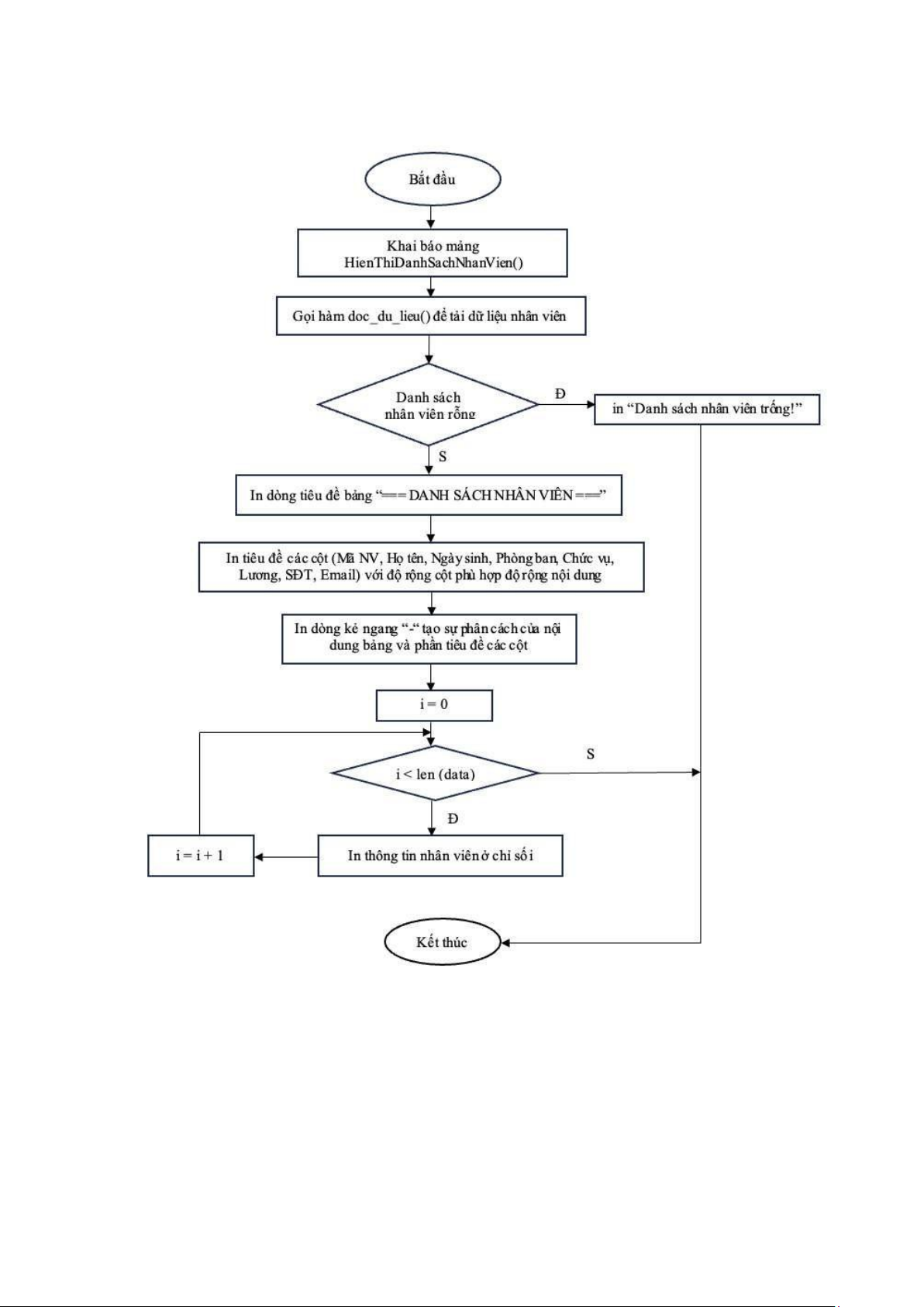 - Sau khi mã nhân viên hợp lệ, hàm sử dụng vòng lặp for để duyệt qua tất cả các
