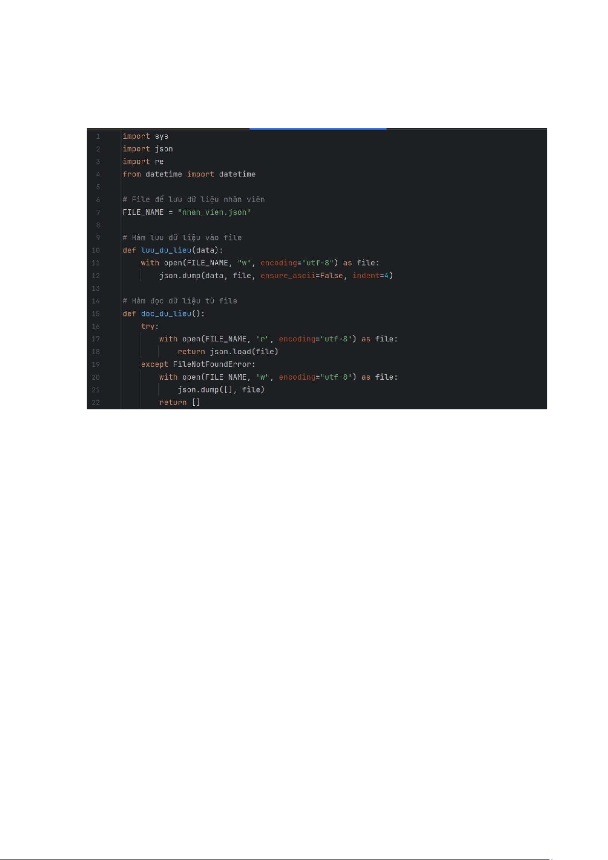 + Hàm cố gắng mở file nhan_vien.json ở chế độ đọc ("r"). lOMoAR cPSD| 47205411