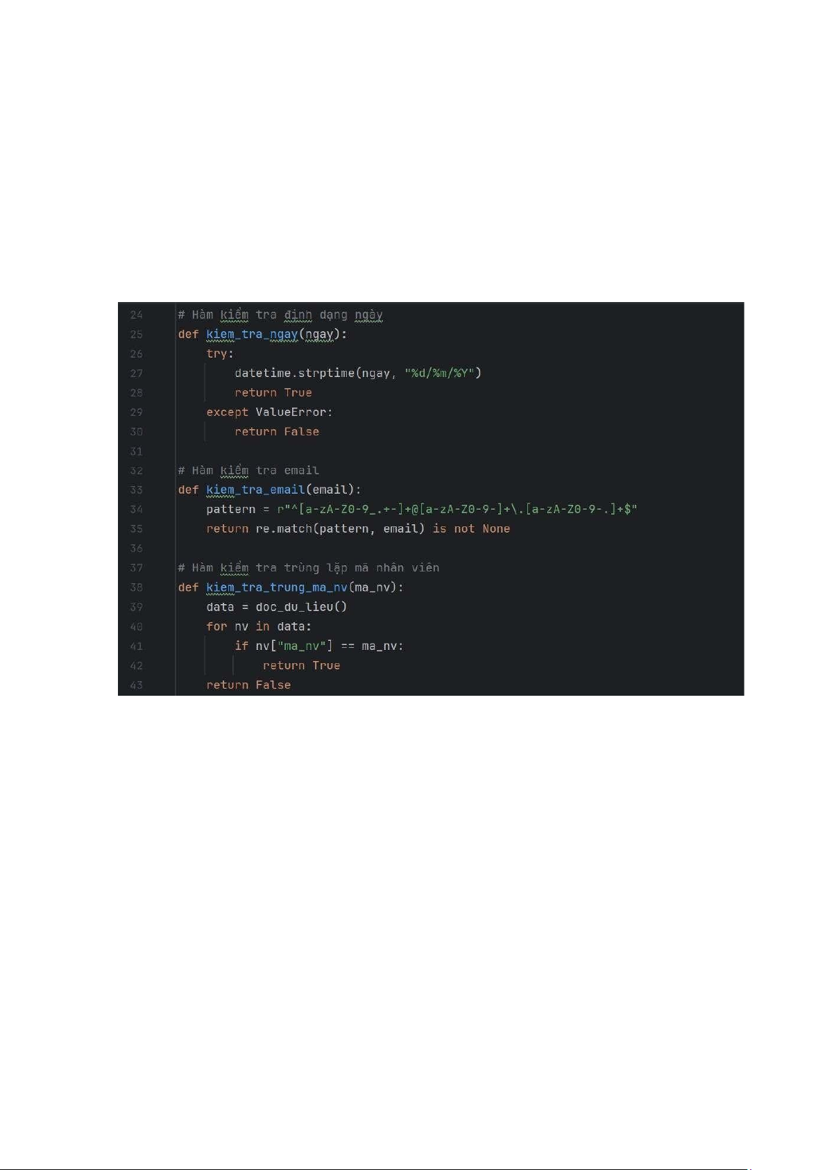+ Hàm kiểm tra định dạng ngày: Hàm kiem_tra_ngay(ngay) sử dụng