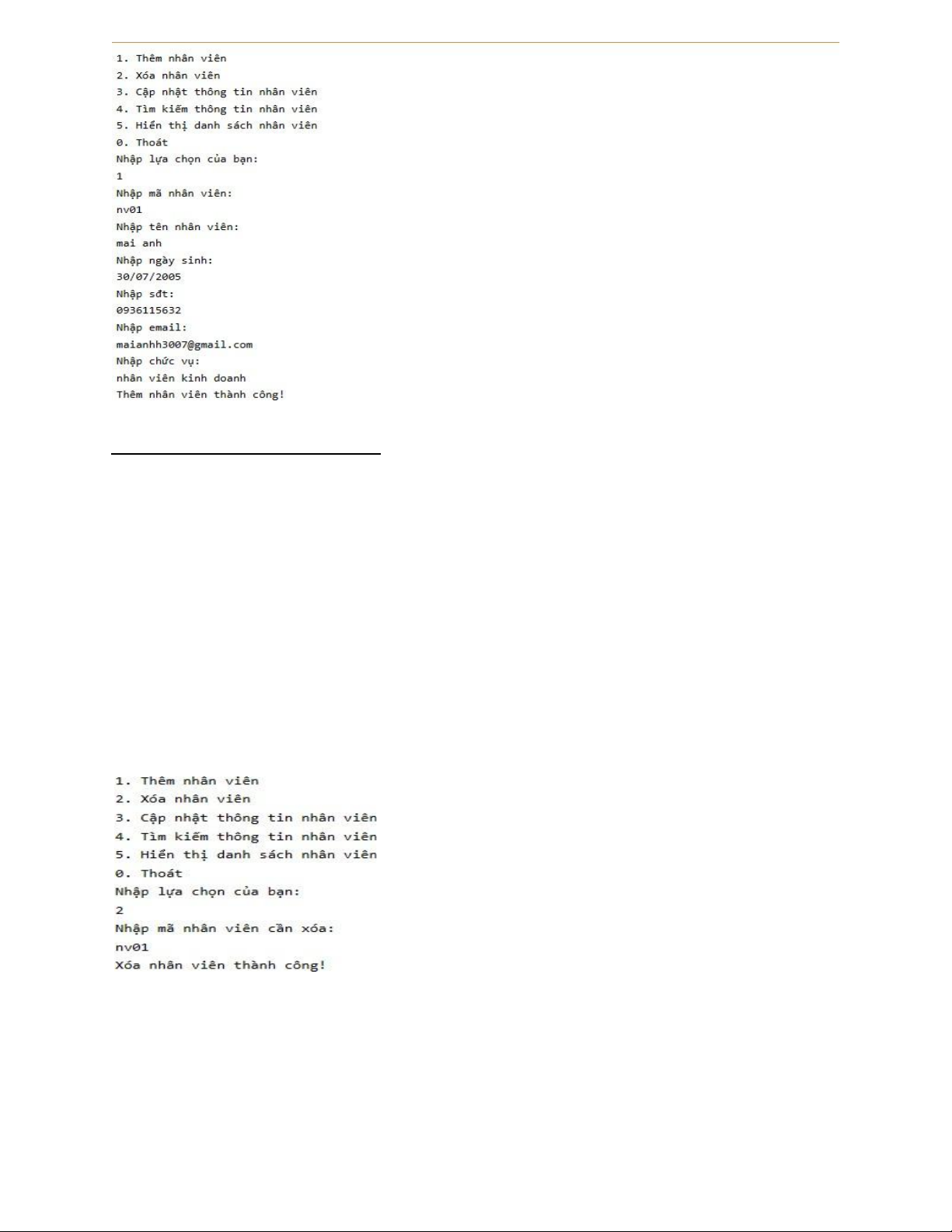 - Chương trình yêu cầu người dùng nhập lần lượt các thông tin của nhân viên