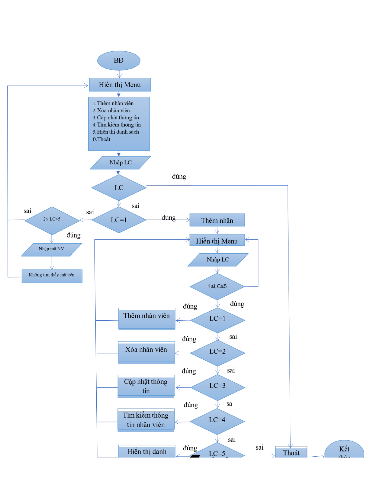 muốn hiển thị danh sách nhân viên chọn 5 khi ở menu) lOMoAR cPSD| 46342985 Sơ đồ khối