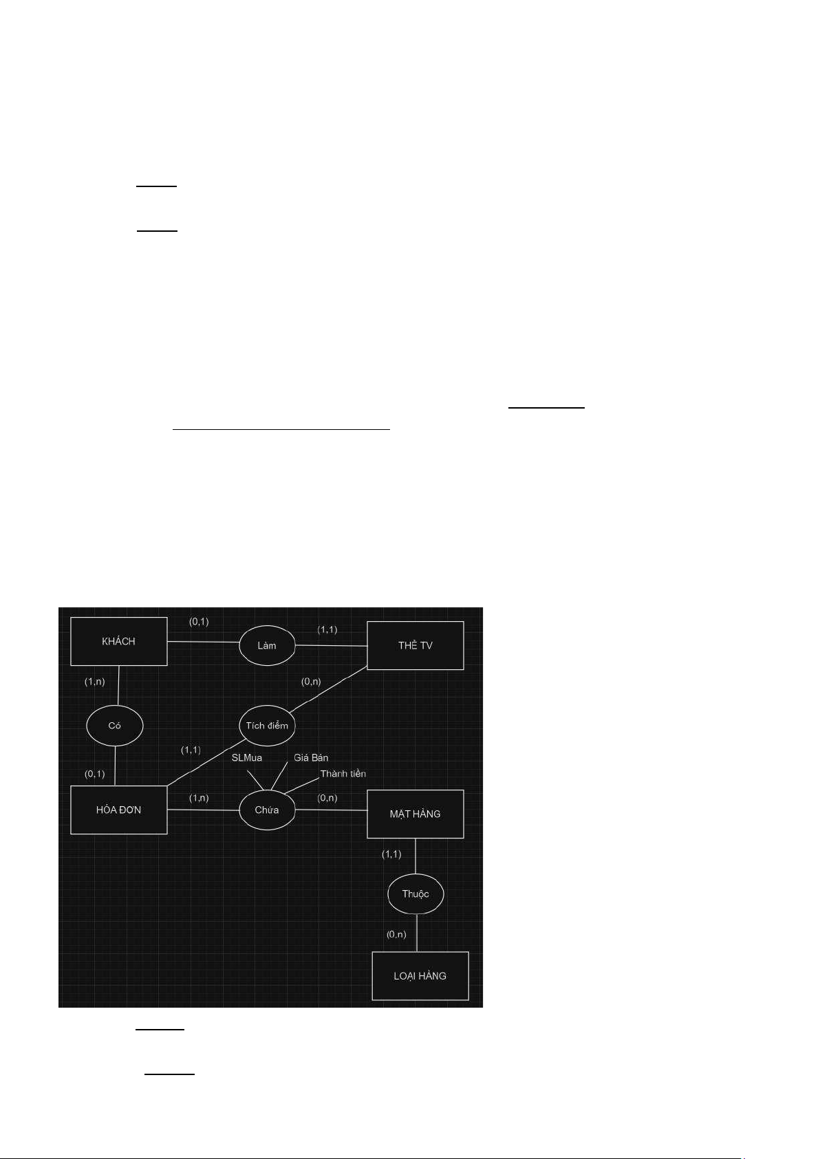 • Quan hệ 1-n (Cha-Con): Loại thực thể phía max=n là Cha. (0,1)-(0,n) (0,1)-(1,n) (1,1)-(0,n) lOMoAR cPSD| 58968691 (1,1)-(1,n)