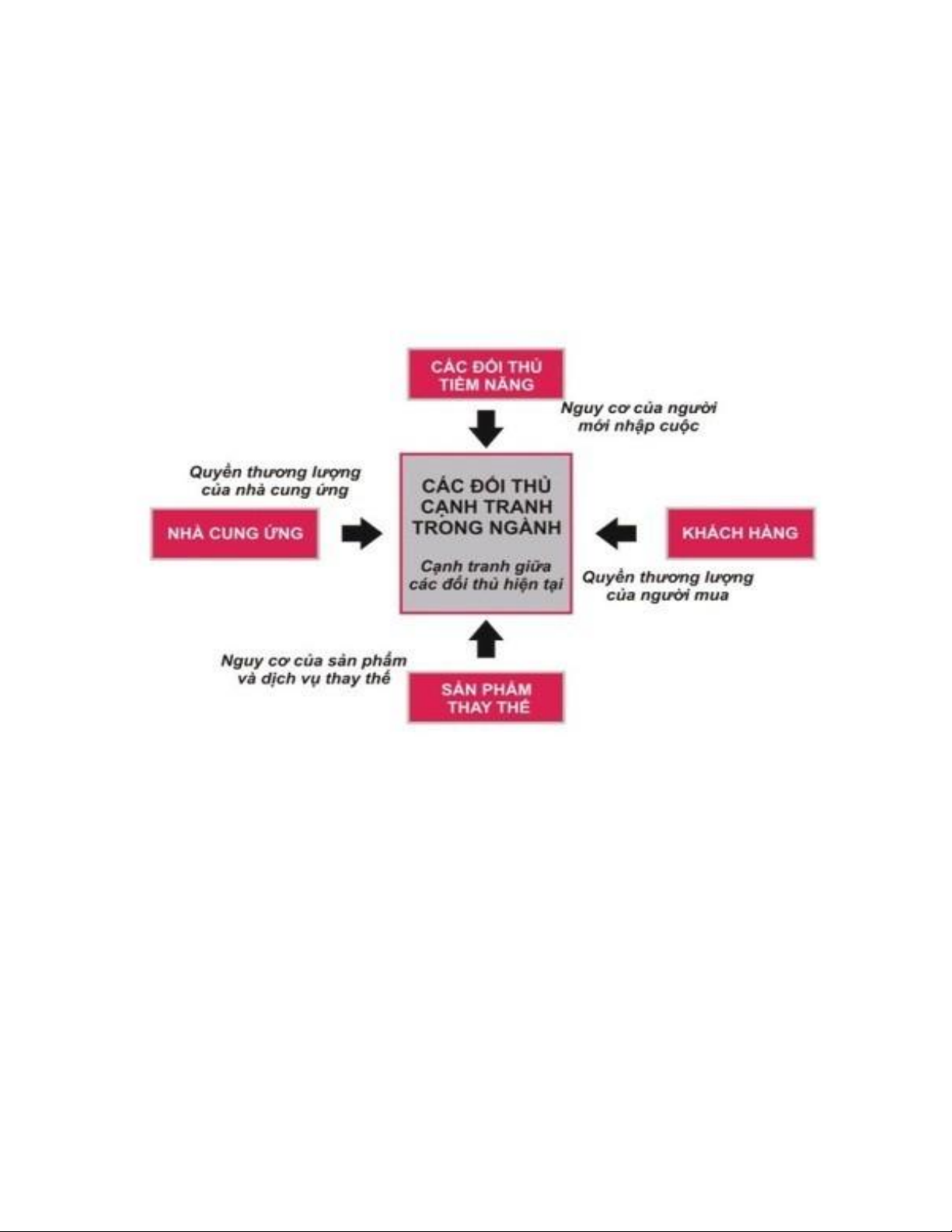 tả về cơ cấu cạnh tranh của một ngành. Mỗi một yếu tố lại chịu nhiều ảnh hưởng của