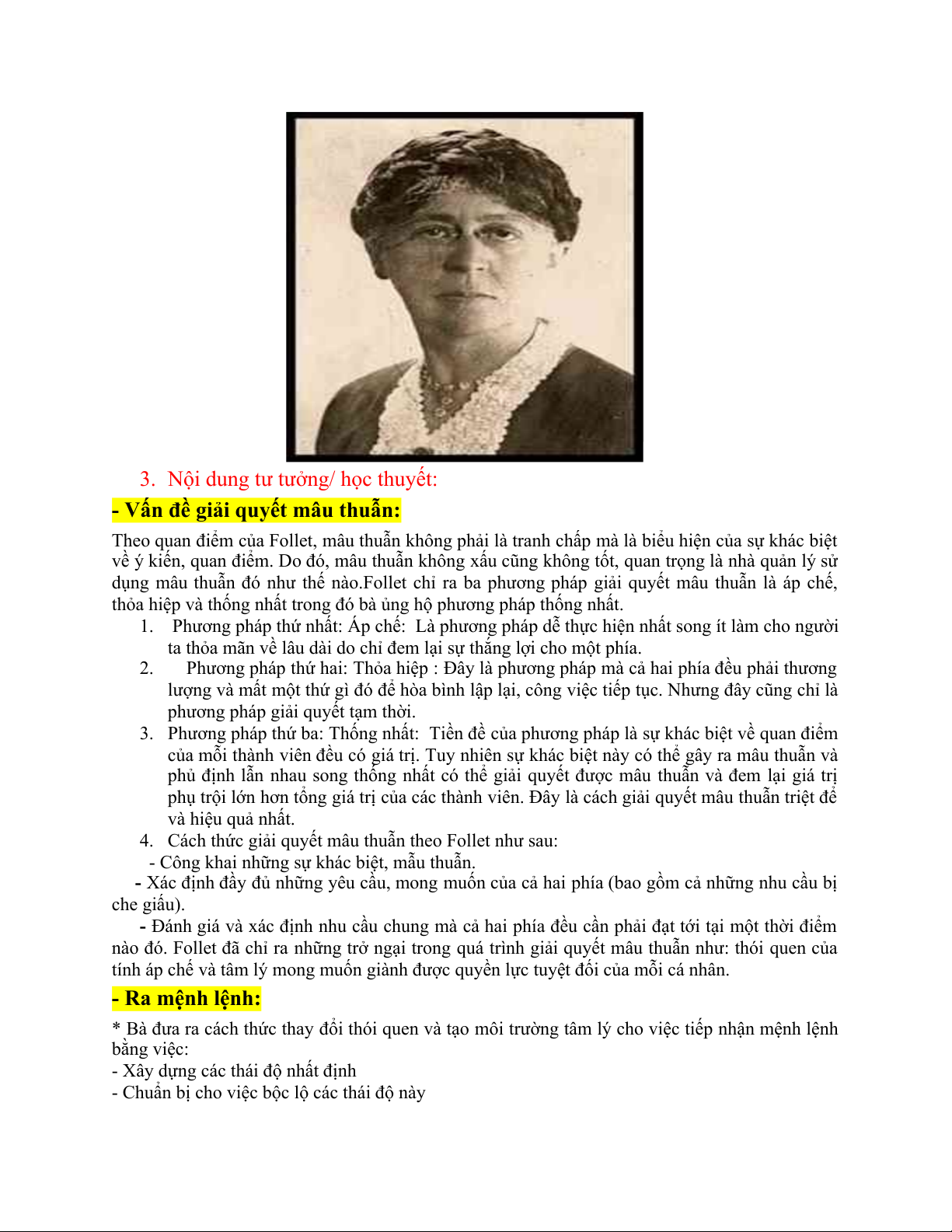 dụng mâu thuẫn đó như thế nào.Follet chỉ ra ba phương pháp giải quyết mâu thuẫn là áp chế,