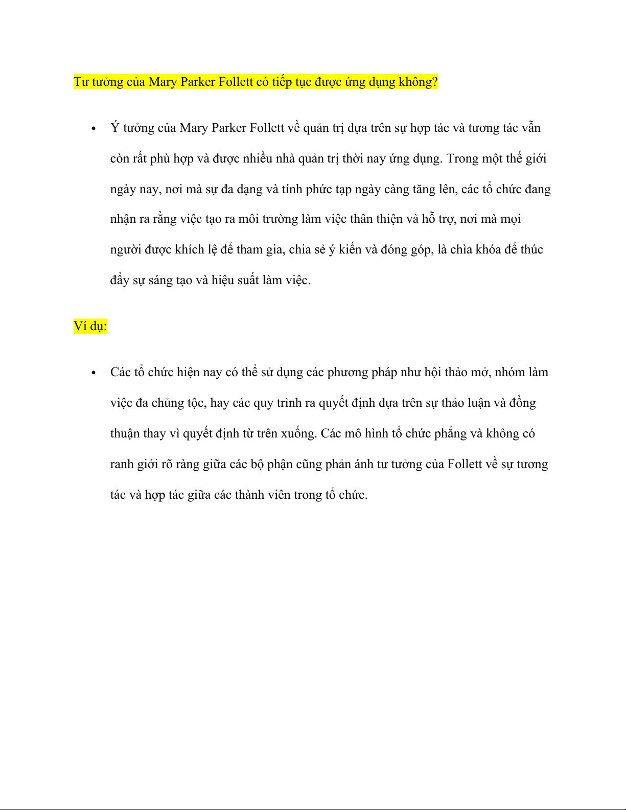 Tư tưởng của Mary Parker Follett có tiếp tục được ứng dụng không?