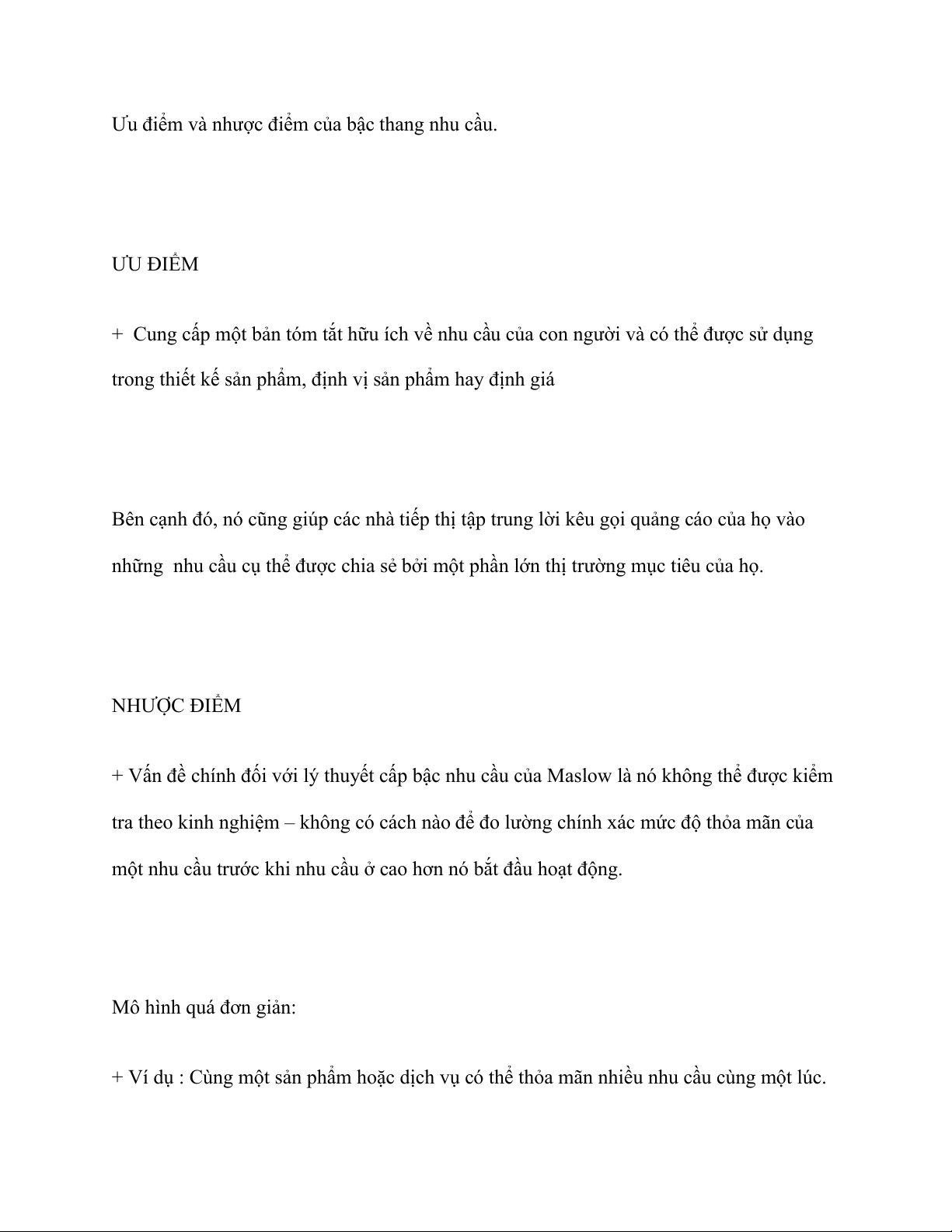 + Theo lý thuyết nhu cầu của Maslow, con người cần thỏa mãn các nhu cầu cơ bản như