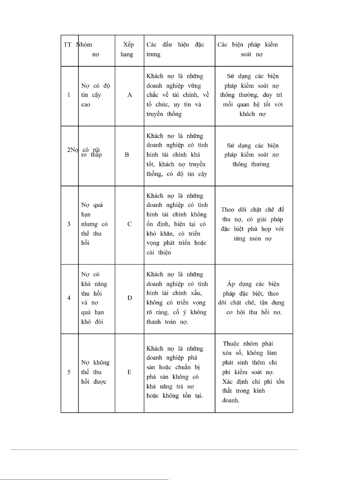nợ này thường là những doanh nghiệp có tình hình tài chính khá tốt, khách nợ truyền thống, có độ tin cậy.