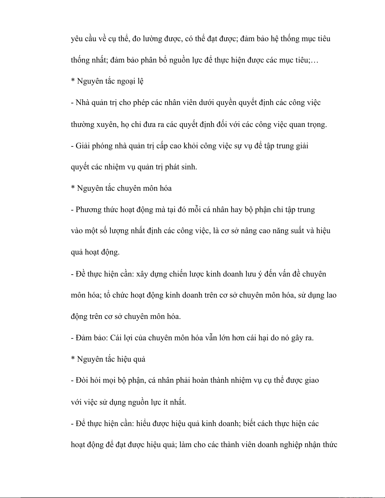 thống nhất; đảm bảo phân bổ nguồn lực để thực hiện được các mục tiêu;… * Nguyên tắc ngoại lệ