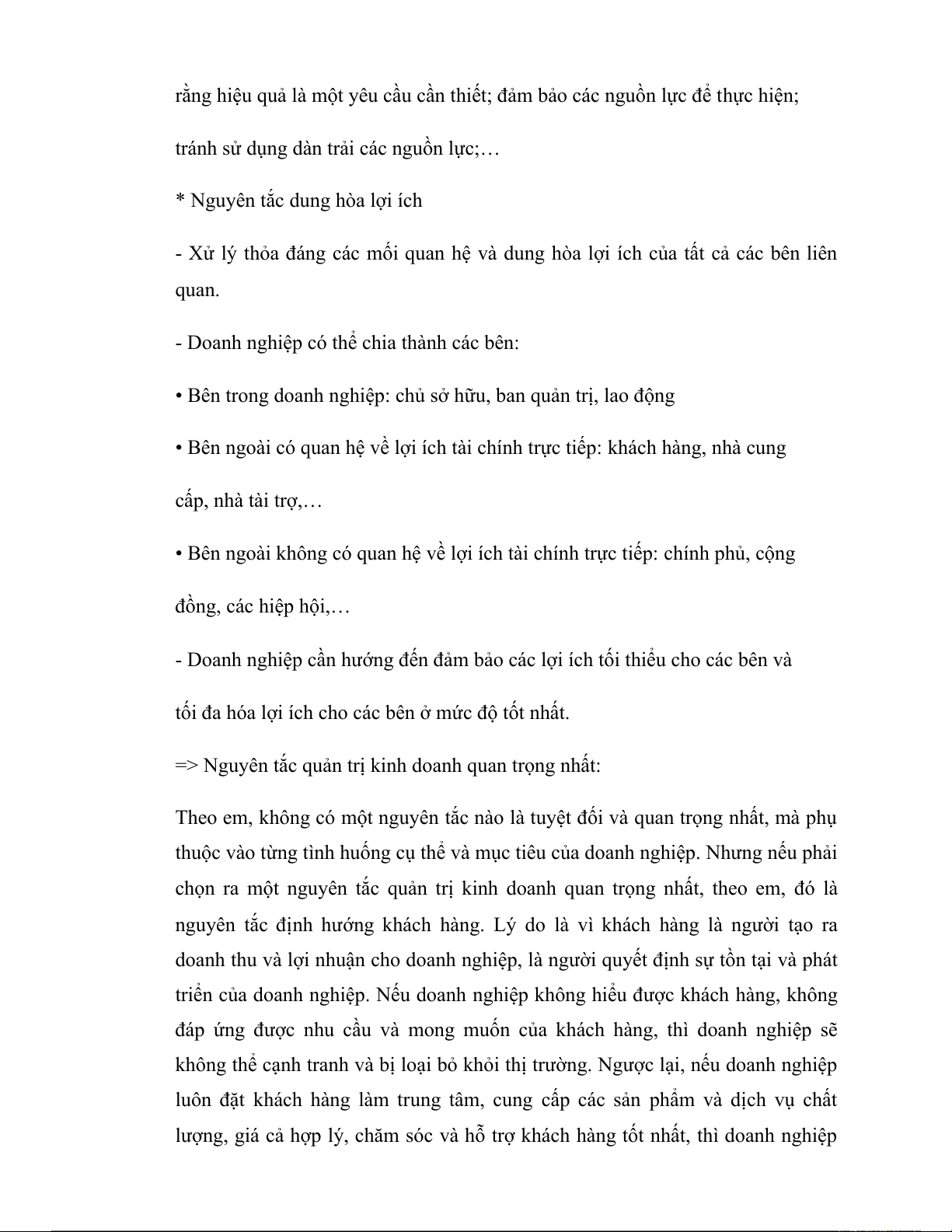 chọn ra một nguyên tắc quản trị kinh doanh quan trọng nhất, theo em, đó là