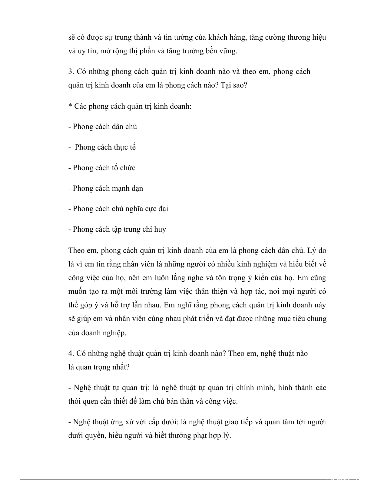 3. Có những phong cách quản trị kinh doanh nào và theo em, phong cách