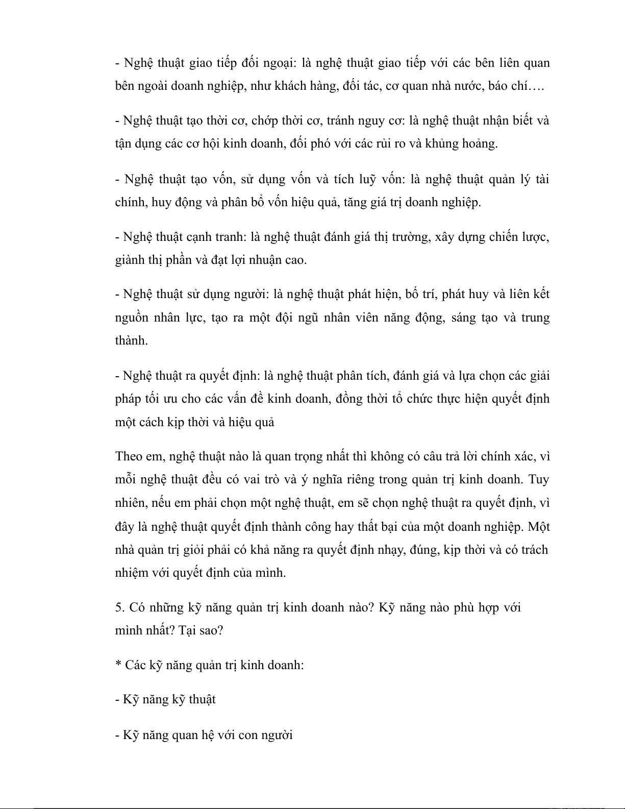 5. Có những kỹ năng quản trị kinh doanh nào? Kỹ năng nào phù hợp với mình nhất? Tại sao?