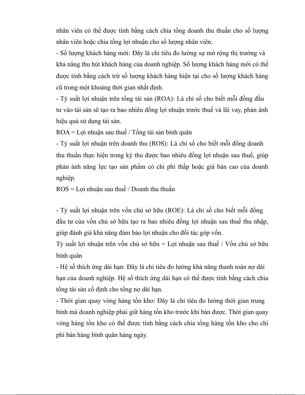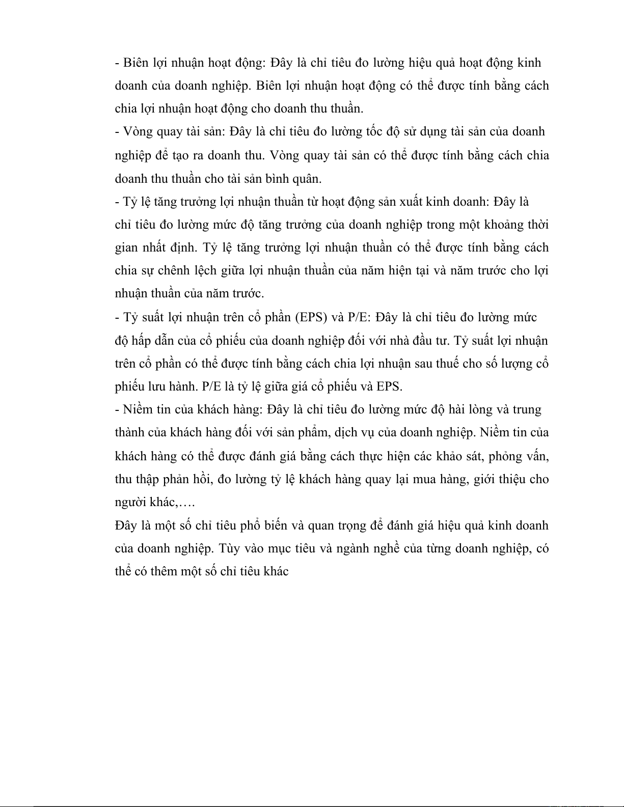Đây là một số chỉ tiêu phổ biến và quan trọng để đánh giá hiệu quả kinh doanh