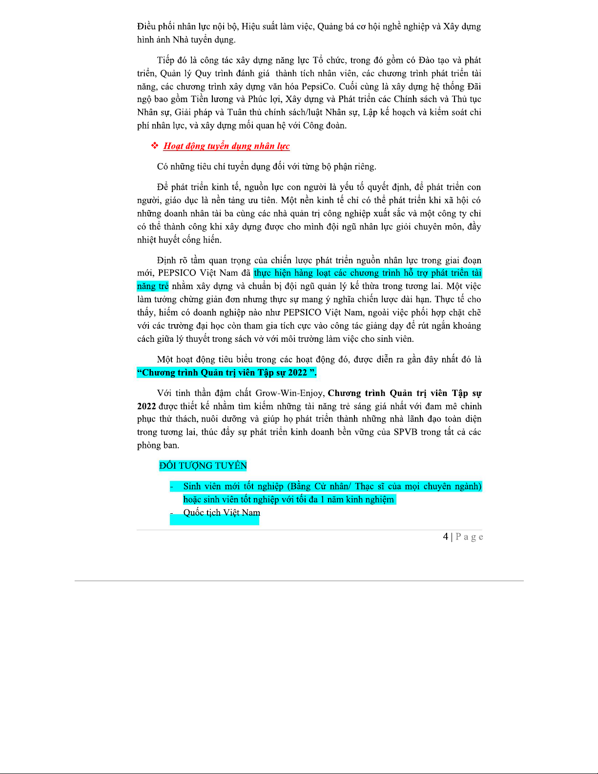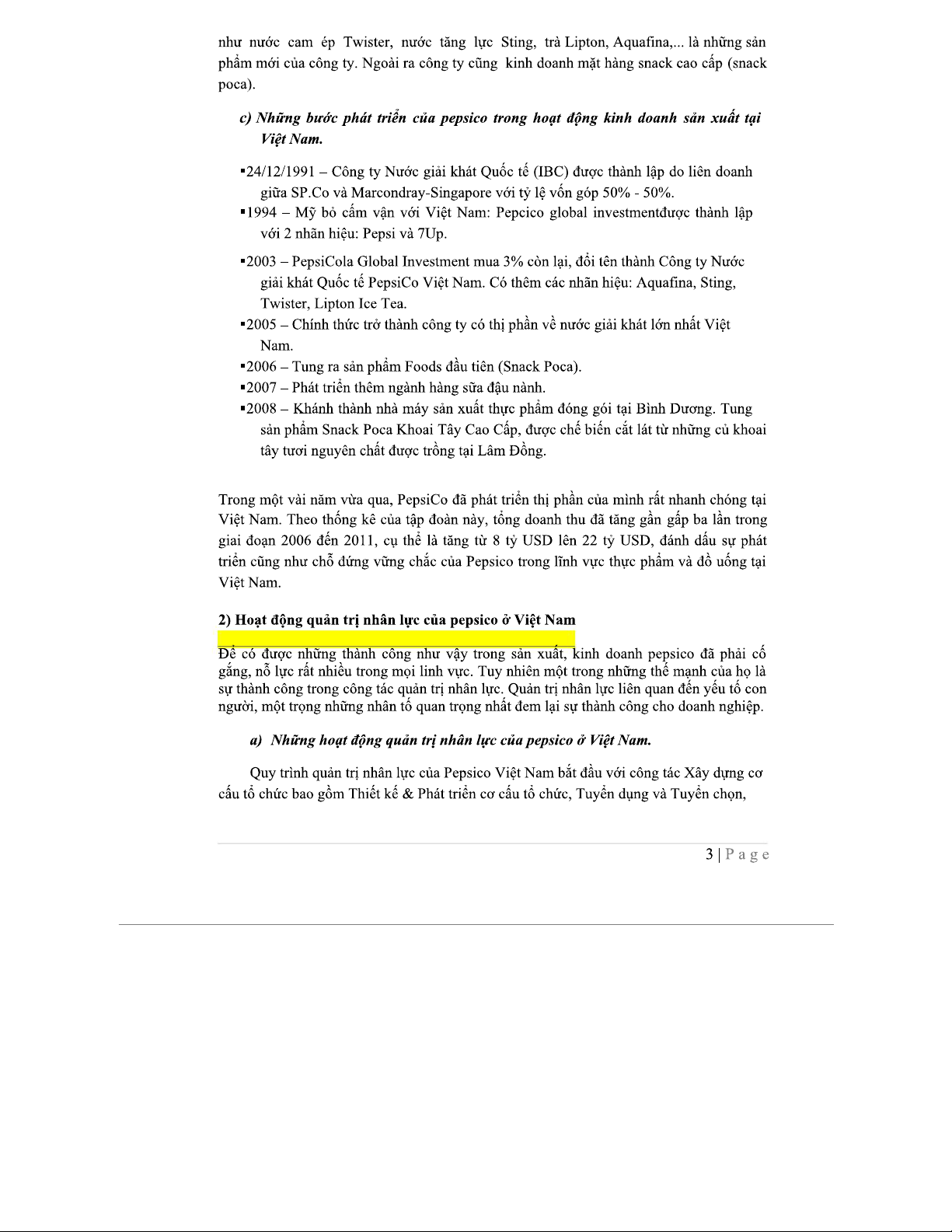Quản trị Nhân lực tại Pepsico Việt Nam: Khái quát và Hoạt động