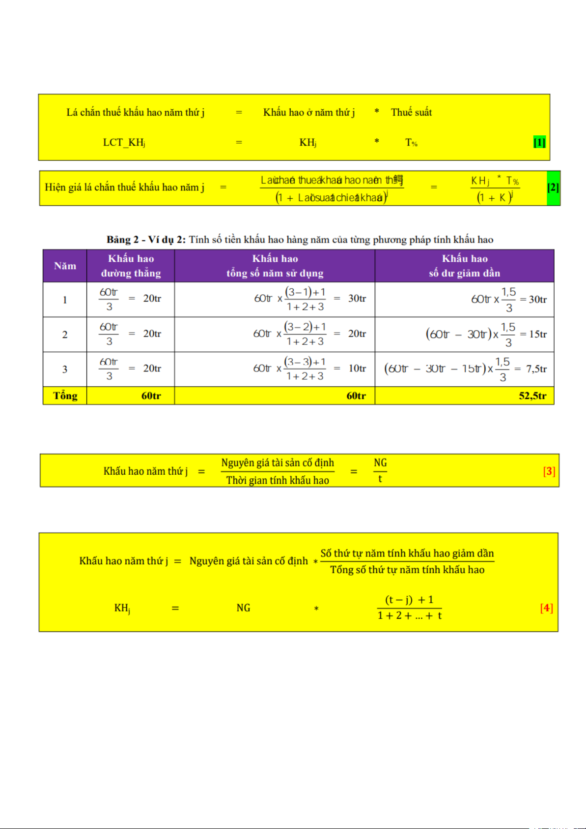 Công thức tính khấu hao tài sản cố định theo phương pháp tổng số năm sử dụng năm thứ j