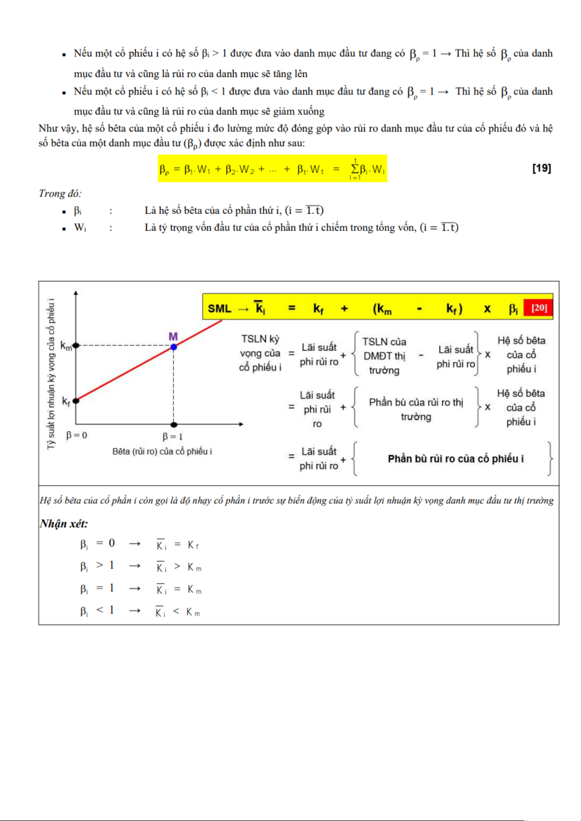 c). Công thức xác định hệ số bêta của cổ phần riêng lẻ: 19