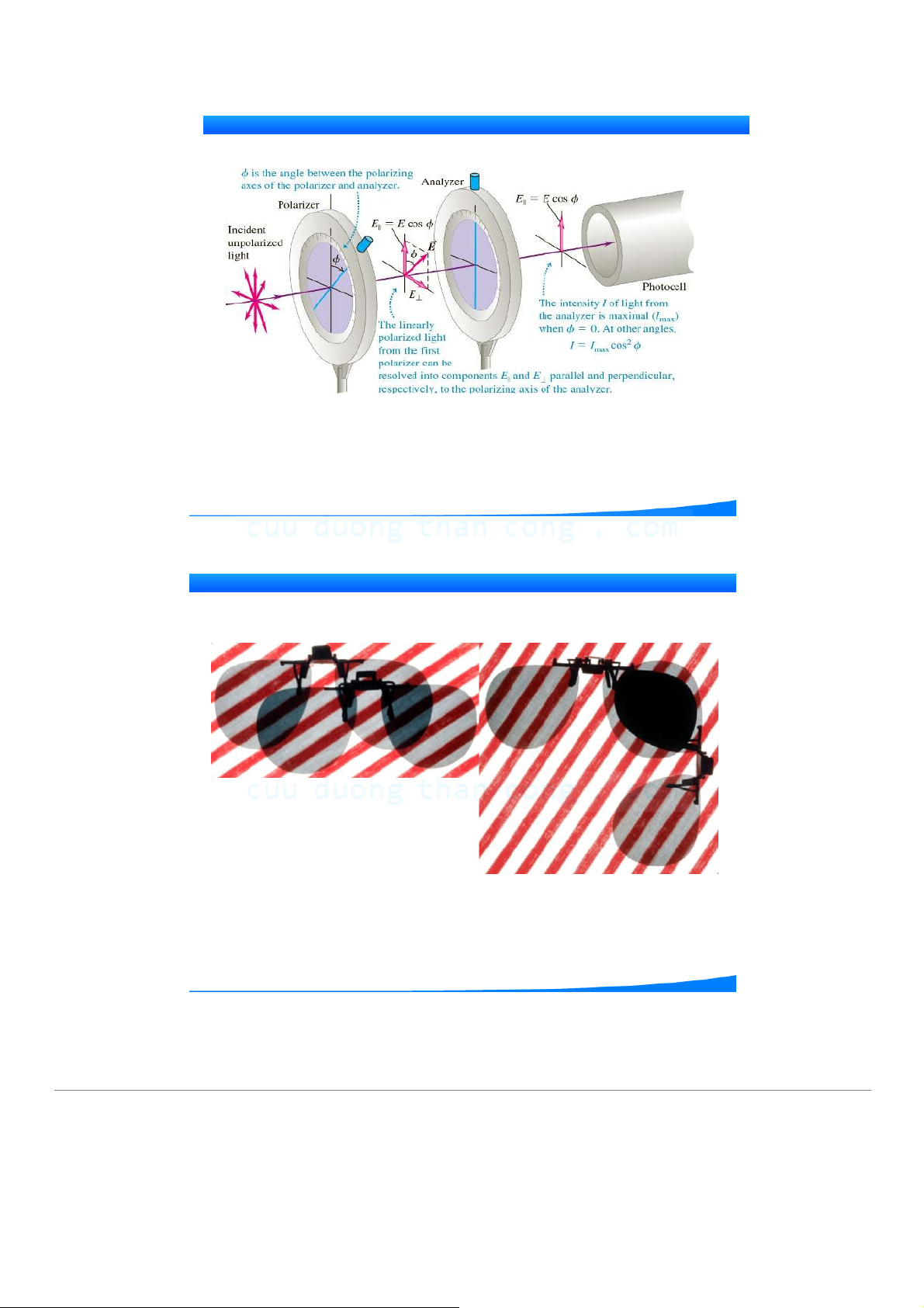 độ ánh sáng truyền qua là: I = kE2 = I0 cos2 ϕ(định luật Malus) ∥