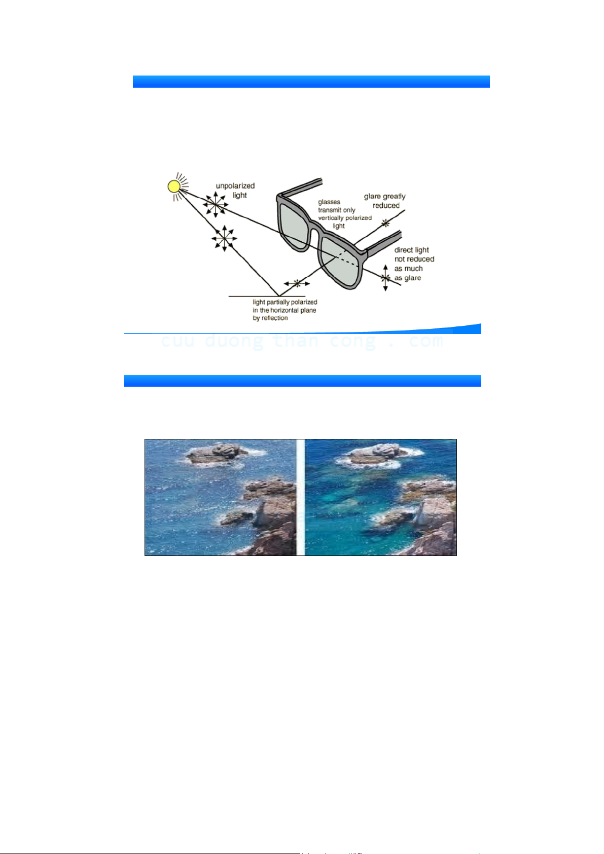 nhìn rõ vật dưới nước hơn. 8 QUANG SÓNG PHÂN C C ÁNH SÁNG ỰTS. Nguyễễn Kim Quang 2. Phân cự c ánh sáng do phả n xạ và khúc xạ - Ứ ng dụ ng (a) (b)