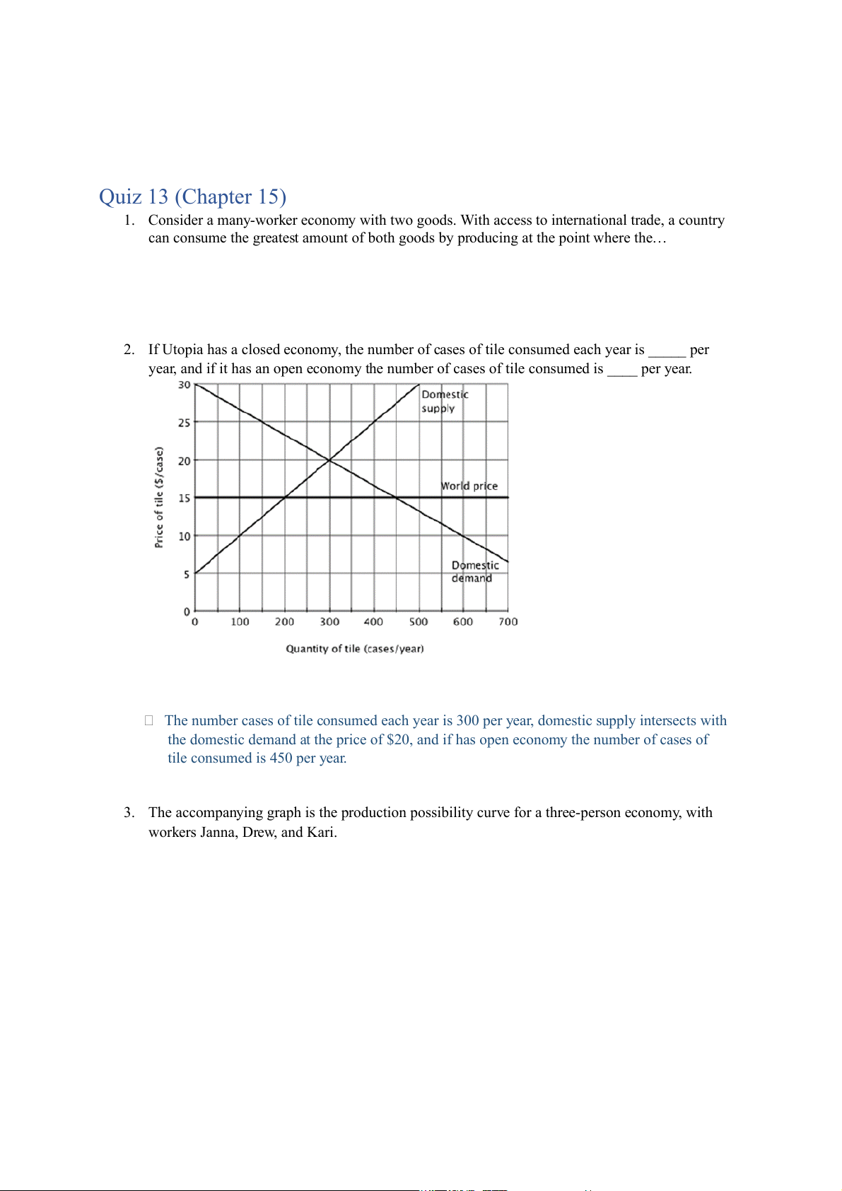 2. If Utopia has a closed economy, the number of cases of tile consumed each year is _____ per