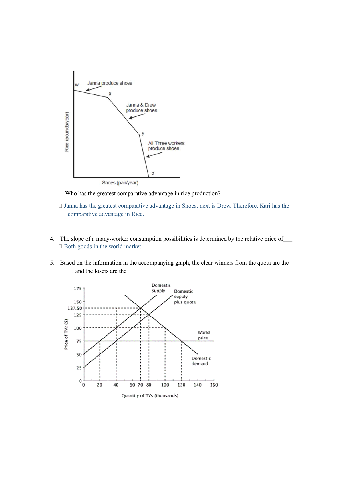 5. Based on the information in the accompanying graph, the clear winners from the quota are the