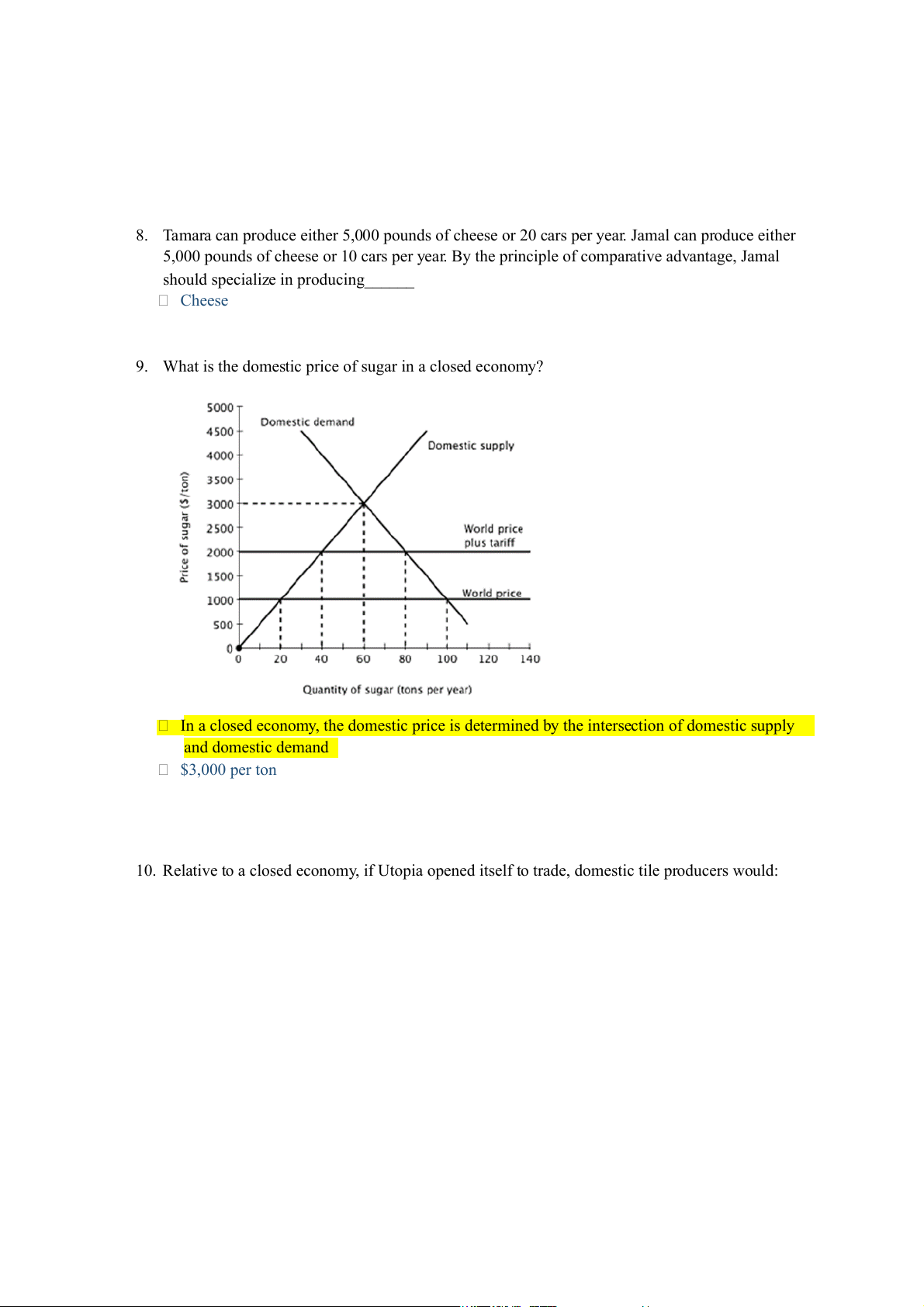 9. What is the domestic price of sugar in a closed economy?