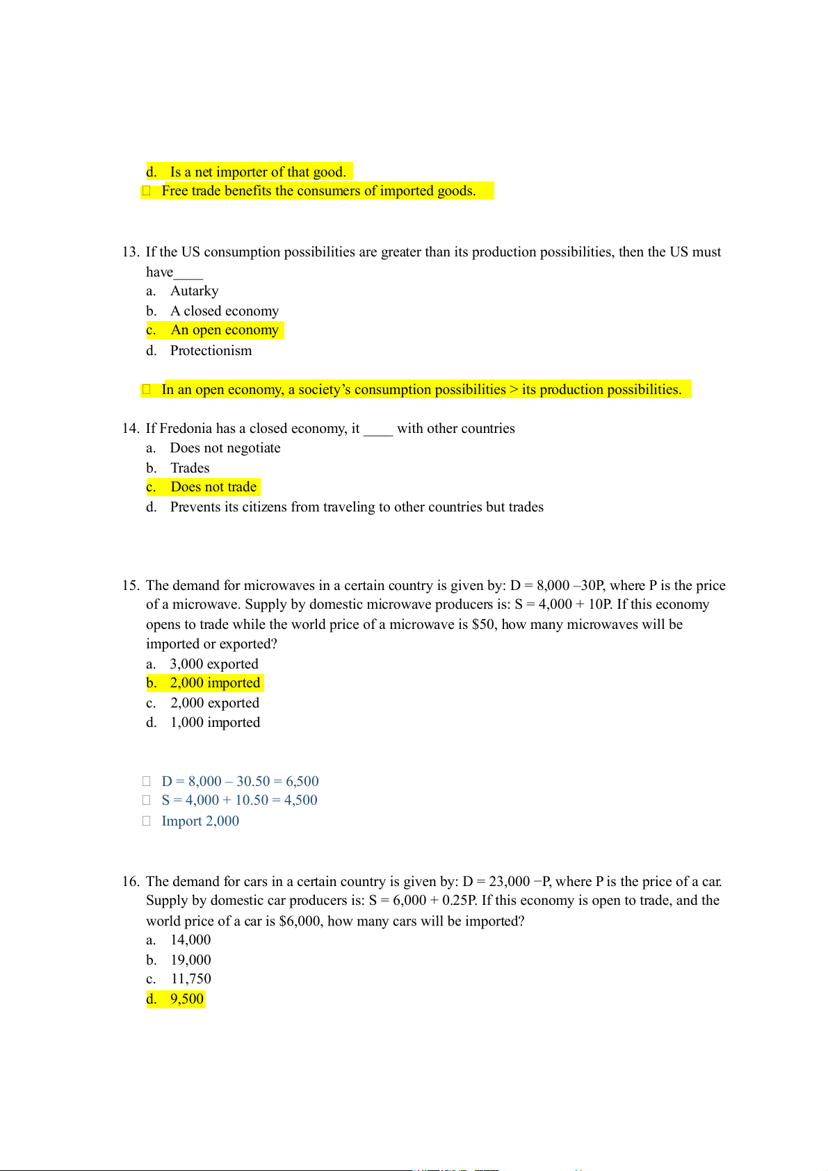13. If the US consumption possibilities are greater than its production possibilities, then the US must have____ a. Autarky b. A closed economy c. An open economy d. Protectionism