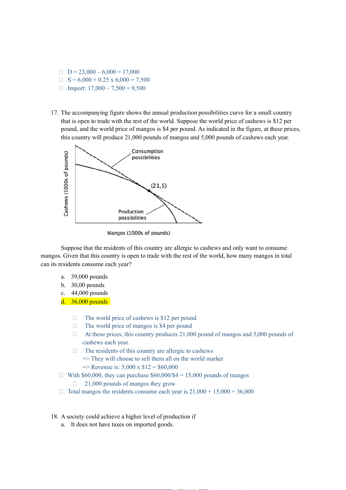 Import: 17,000 – 7,500 = 9,500
