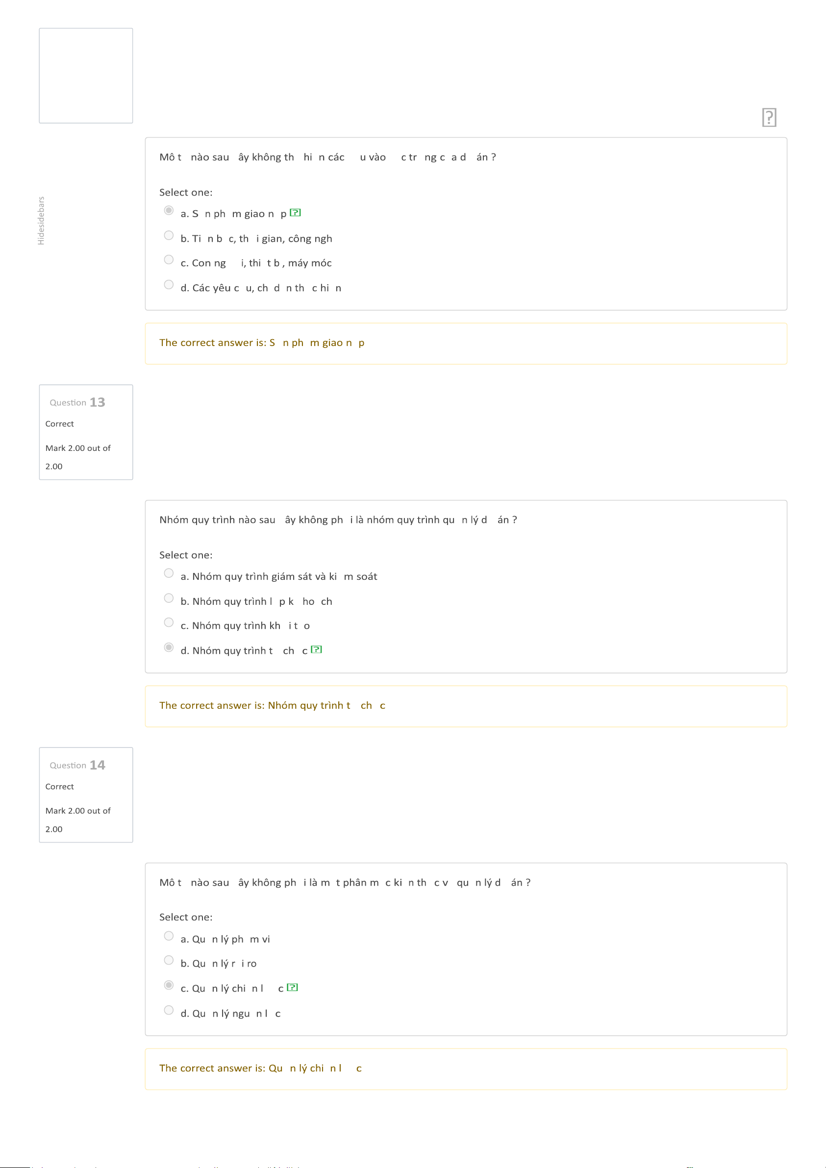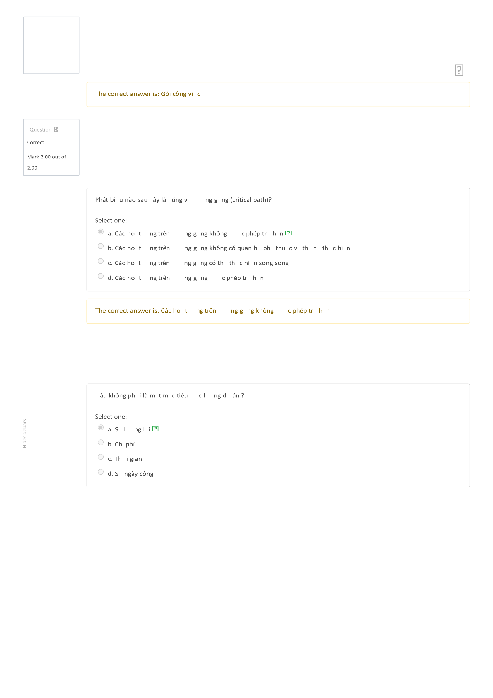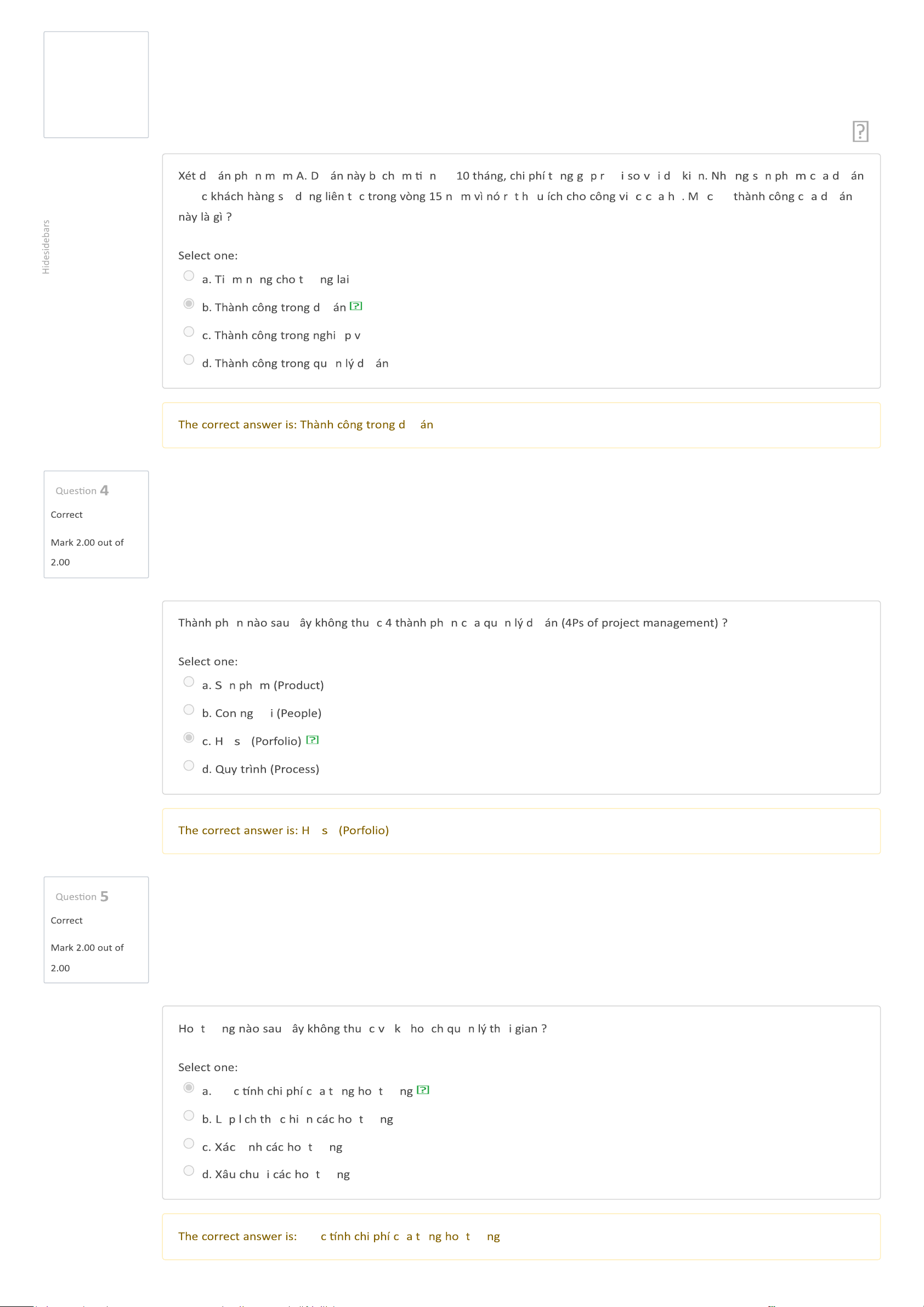 Dashboard My courses BL-IT4082-156723 - Kỹ thuật phần mềm Tuần 5 - Chương 4. Quản lý dự án phần mềm (tiếp theo) (Offline) Quiz Kết thúc chương 4