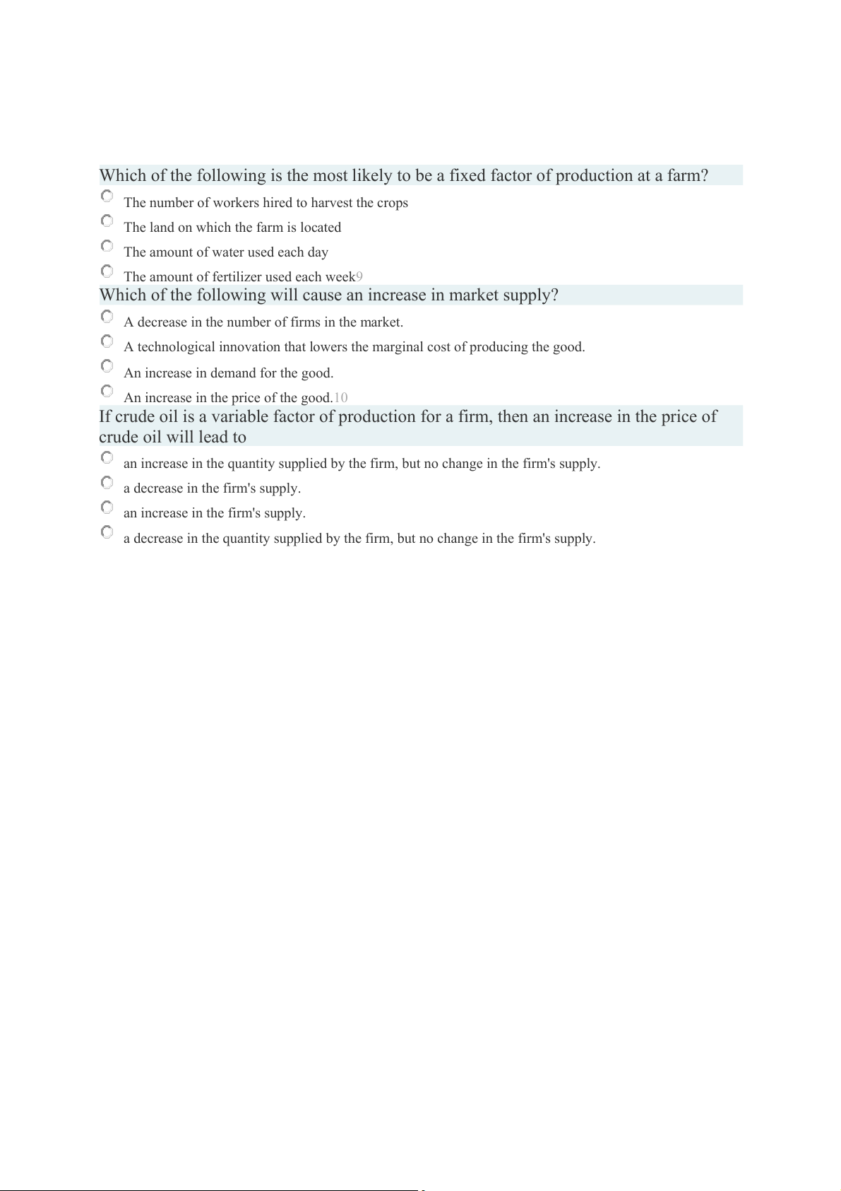 If crude oil is a variable factor of production for a firm, then an increase in the price of crude oil will lead to