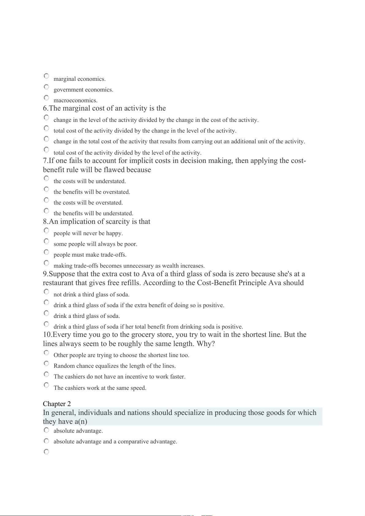 6.The marginal cost of an activity is the