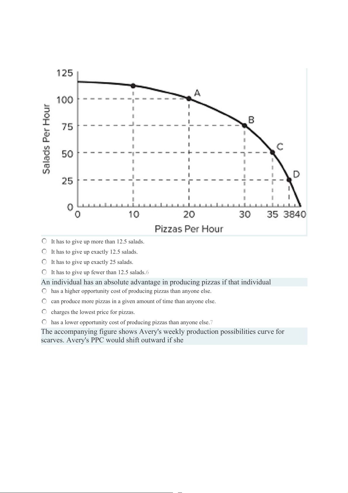 The accompanying figure shows Avery's weekly production possibilities curve for