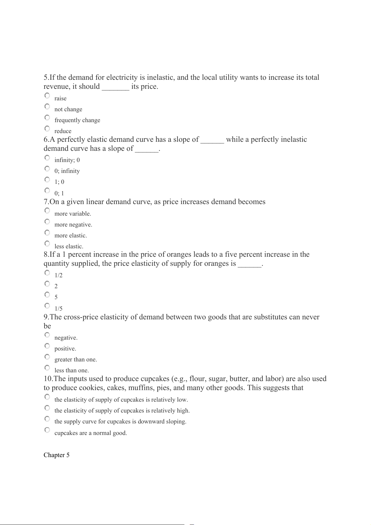 8.If a 1 percent increase in the price of oranges leads to a five percent increase in the